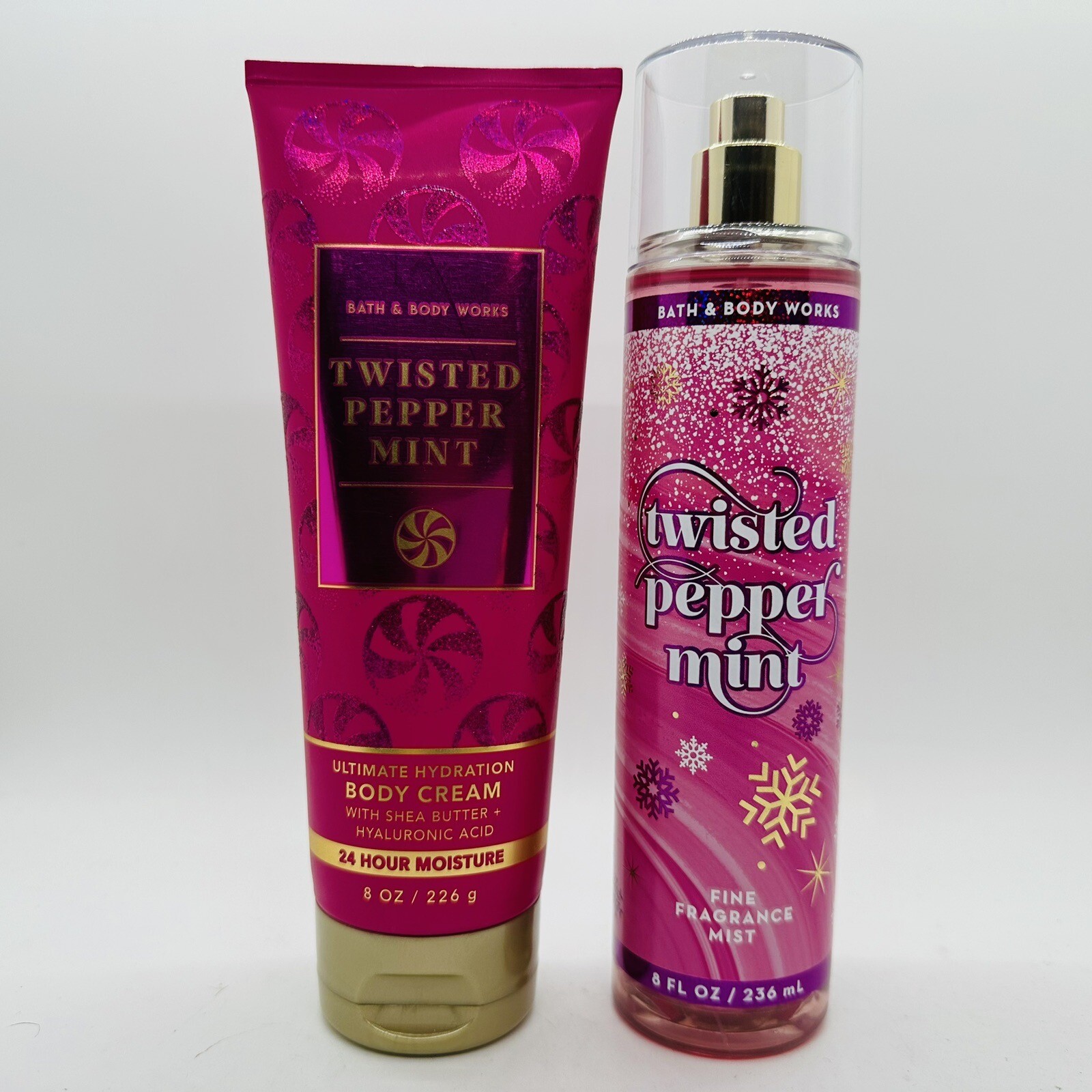 2/PCS BATH BODY WORKS TWISTED PEPPERMINT BODY CREAM FRAGRANCE MIST 8 FL OZ
