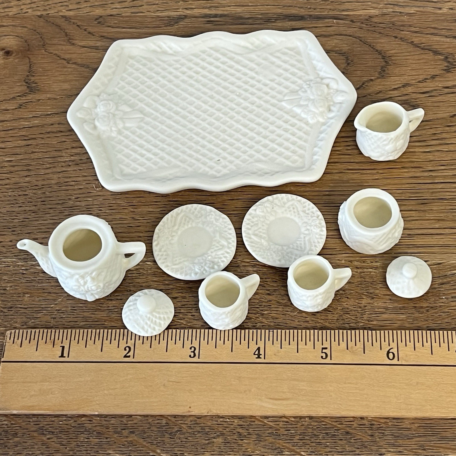 Vintage Miniature Ivory Porcelain Bisque 10 Piece Tea Set with Roses