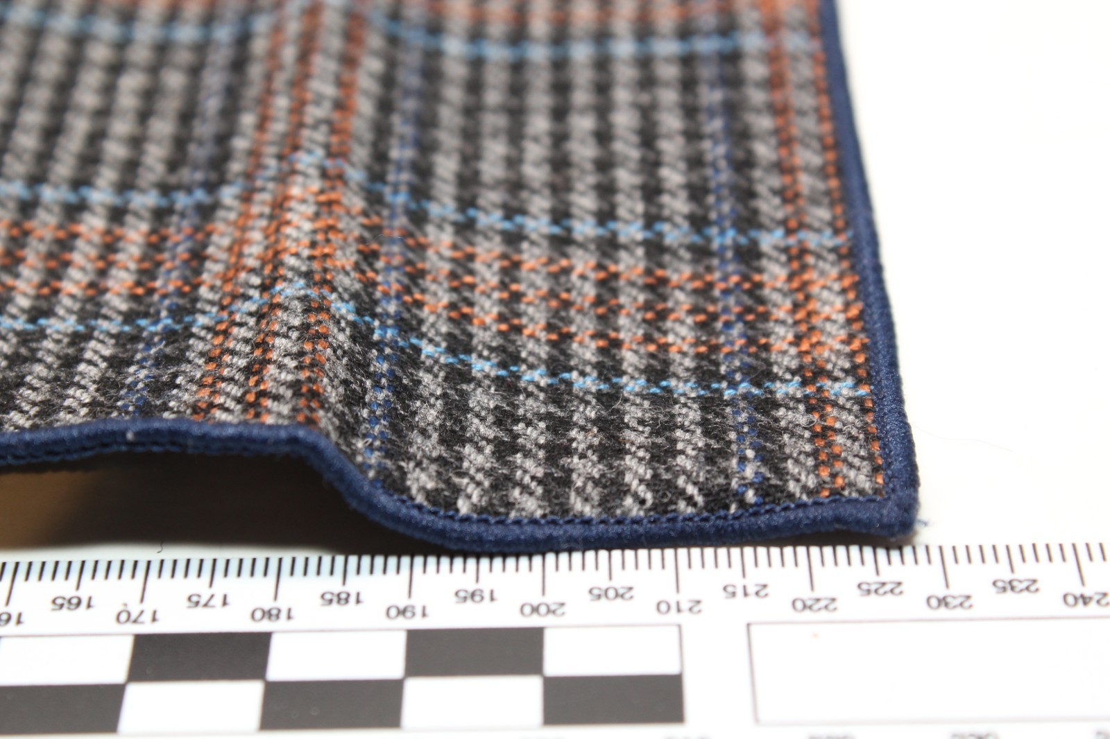 как выглядит mens pure wool pocket square handkerchief - houndstooth w/blue trim фото