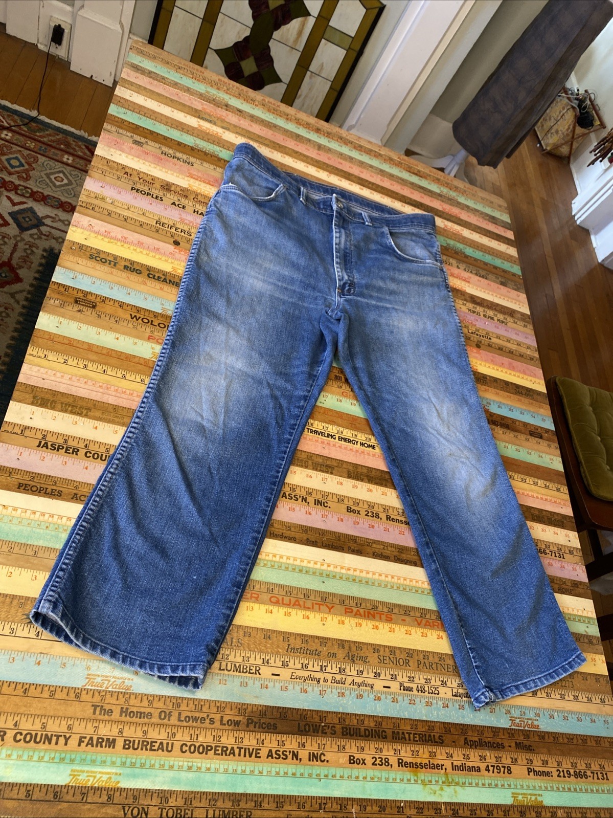 как выглядит Vintage Wrangler Denim Blue Jeans Mens Size 36x30 Faded Distress фото