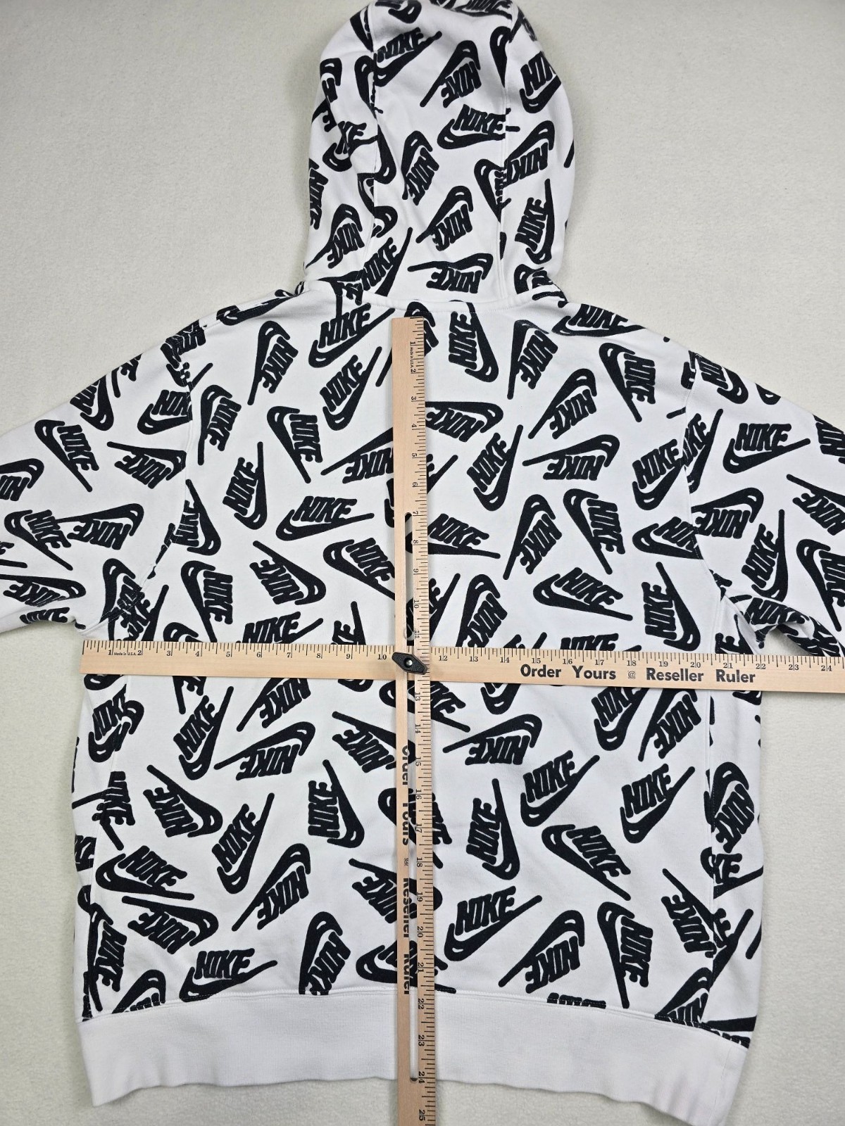 как выглядит Nike Hoodie Sweatshirt Medium Black White Allover Logo Print фото