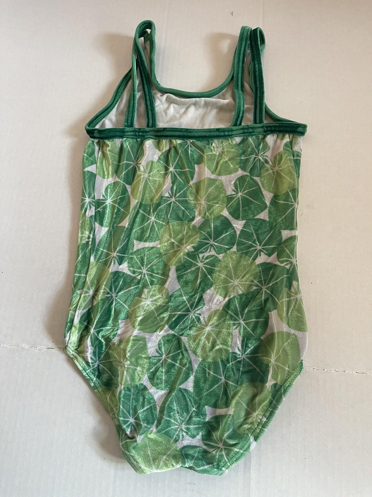 GK Elite LEOTARD Gymnastics Green Leaf Velvet Texture