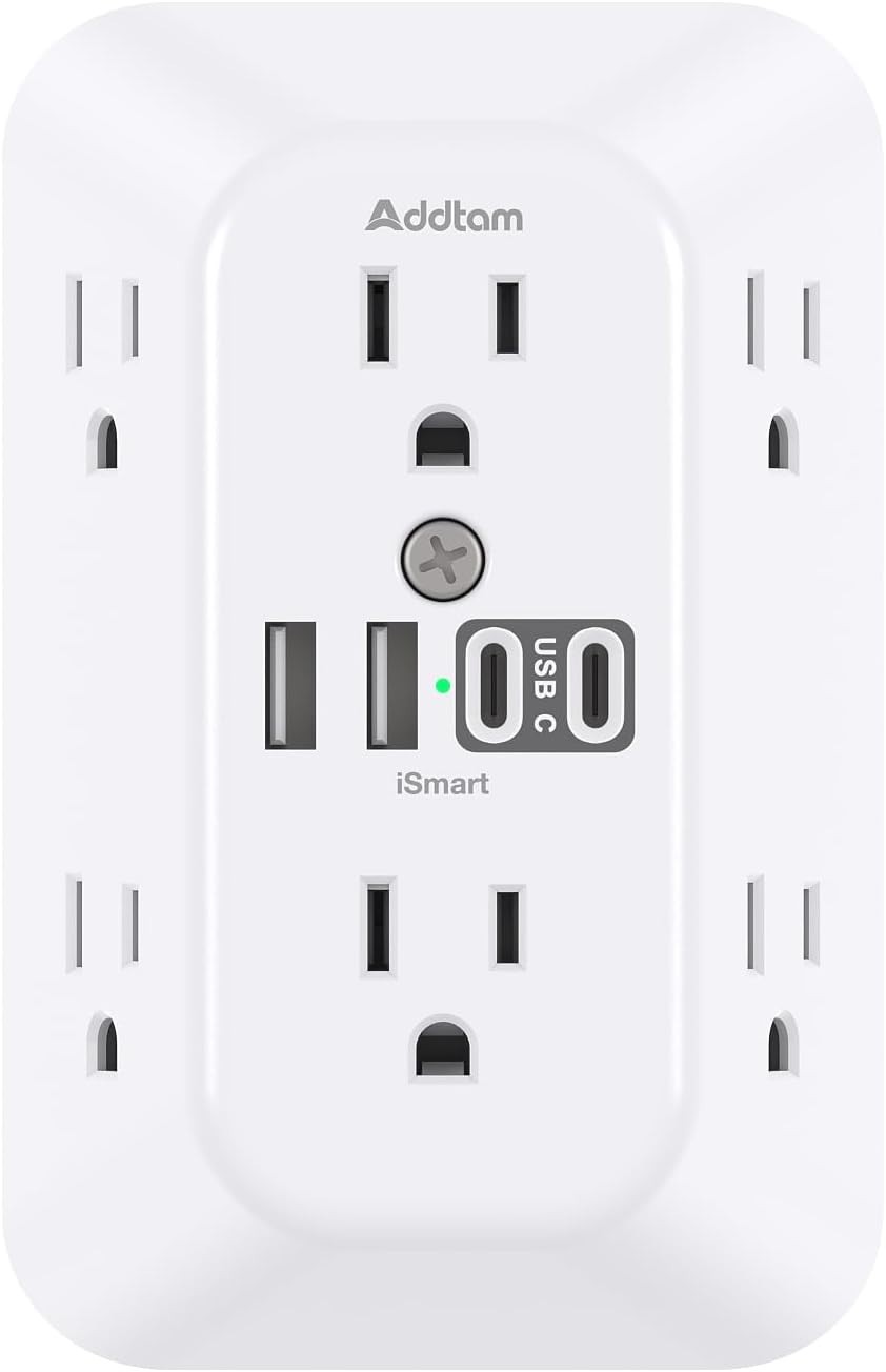 10-in-1 Surge Protector Power Strip - 6 AC Outlets 4 USB Ports for Convenience
