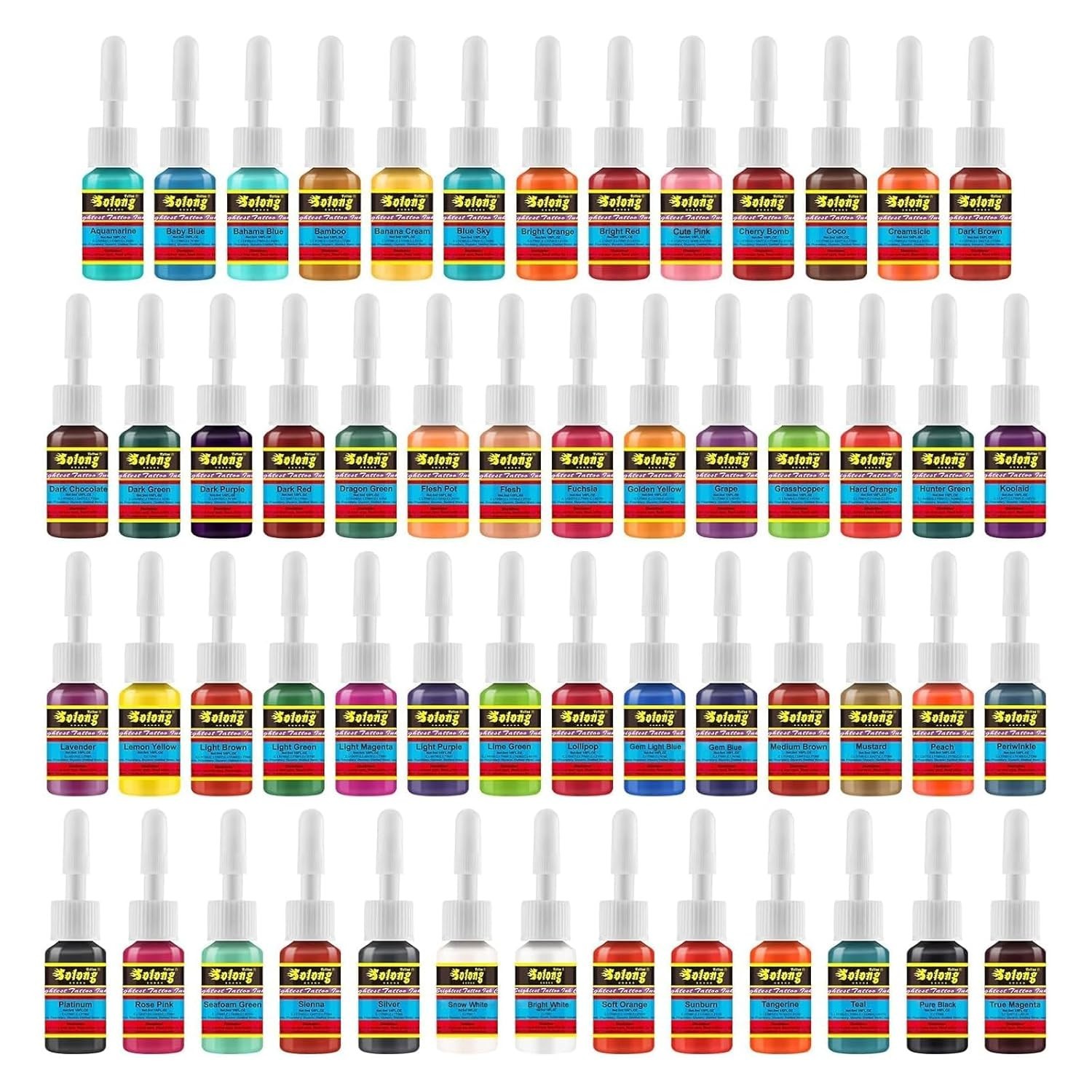 Ink Set 54 Complete Colors Pigment Kit 1/6Oz 5Ml Tattoo Supply for Tattoo Kit