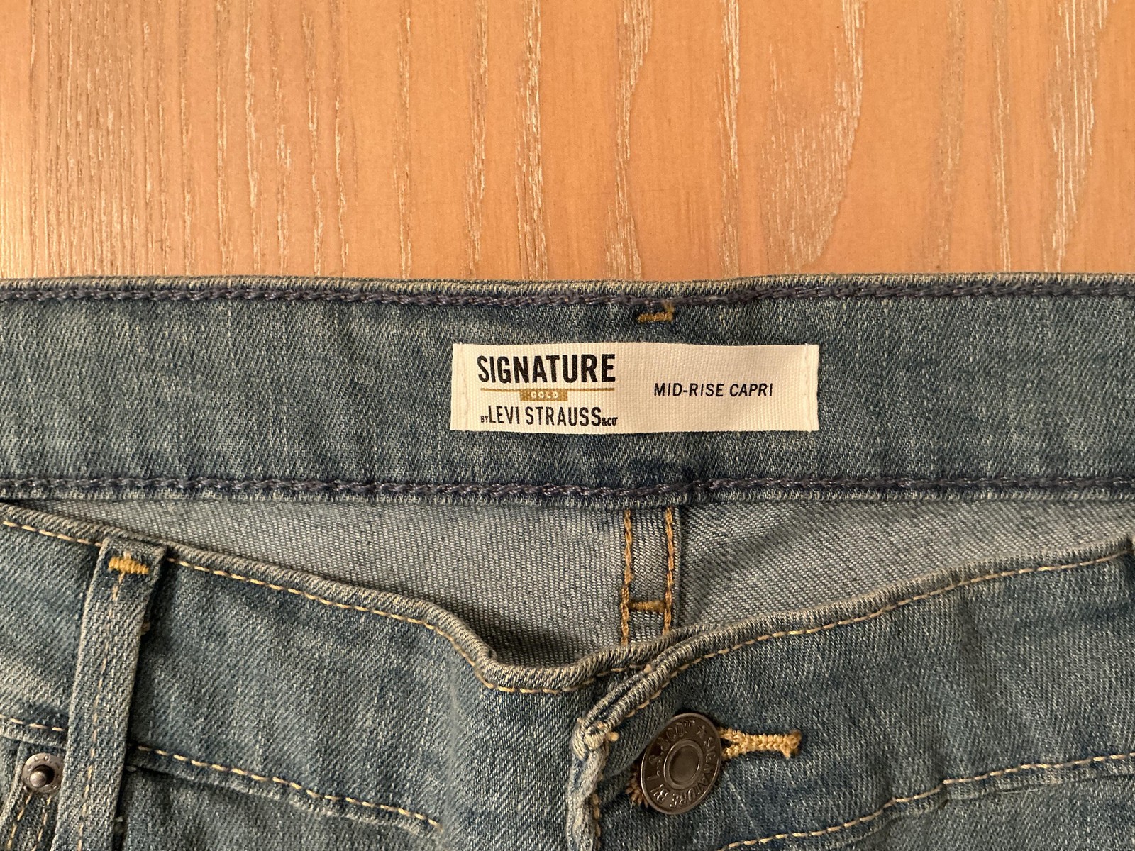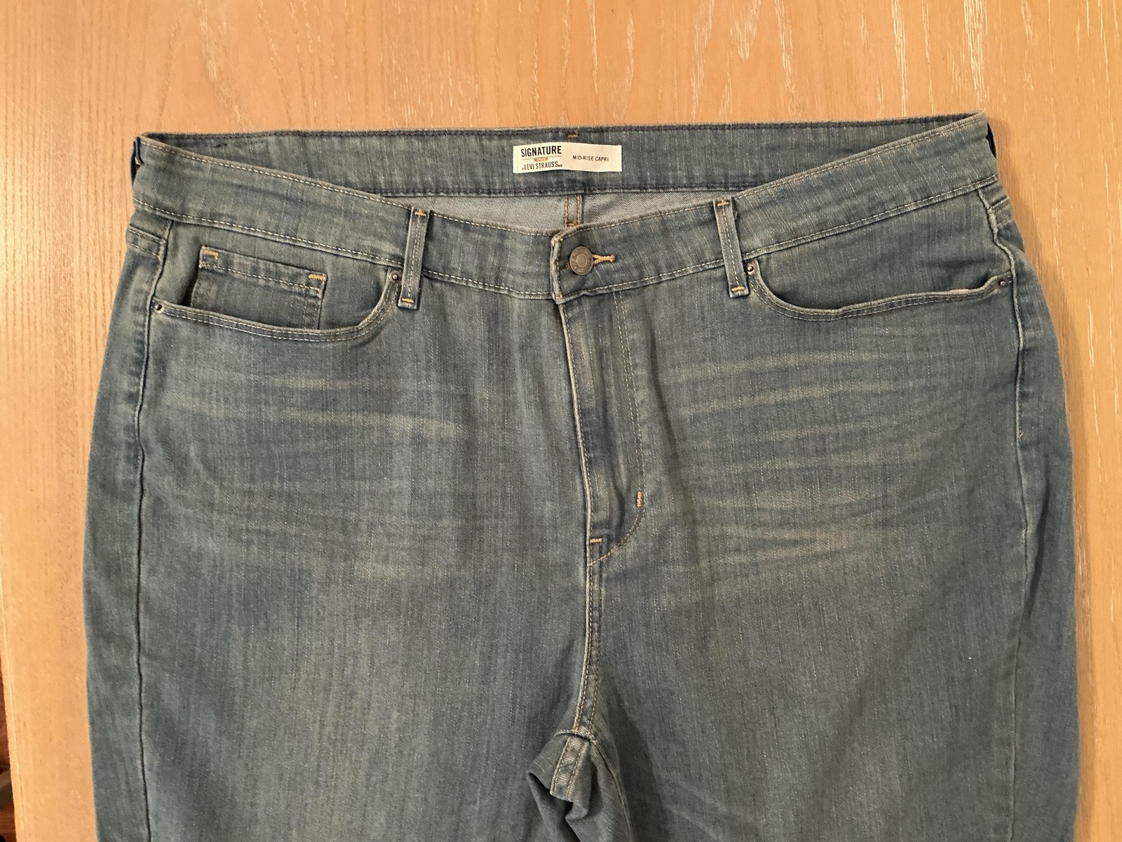 как выглядит Signature by Levi Strauss Capri Jeans Womens 20 Blue Mid Rise Stretch Plus фото
