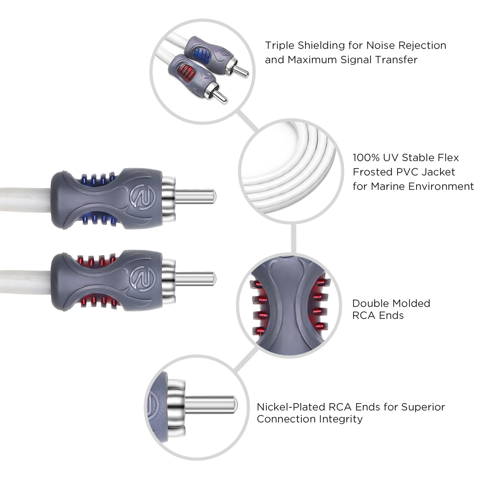 RECOIL RMI29 Tinned OFC 2Channel 9ft RCA Audio Interconnects Cable Car Marine
