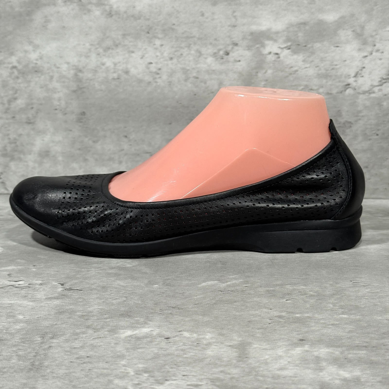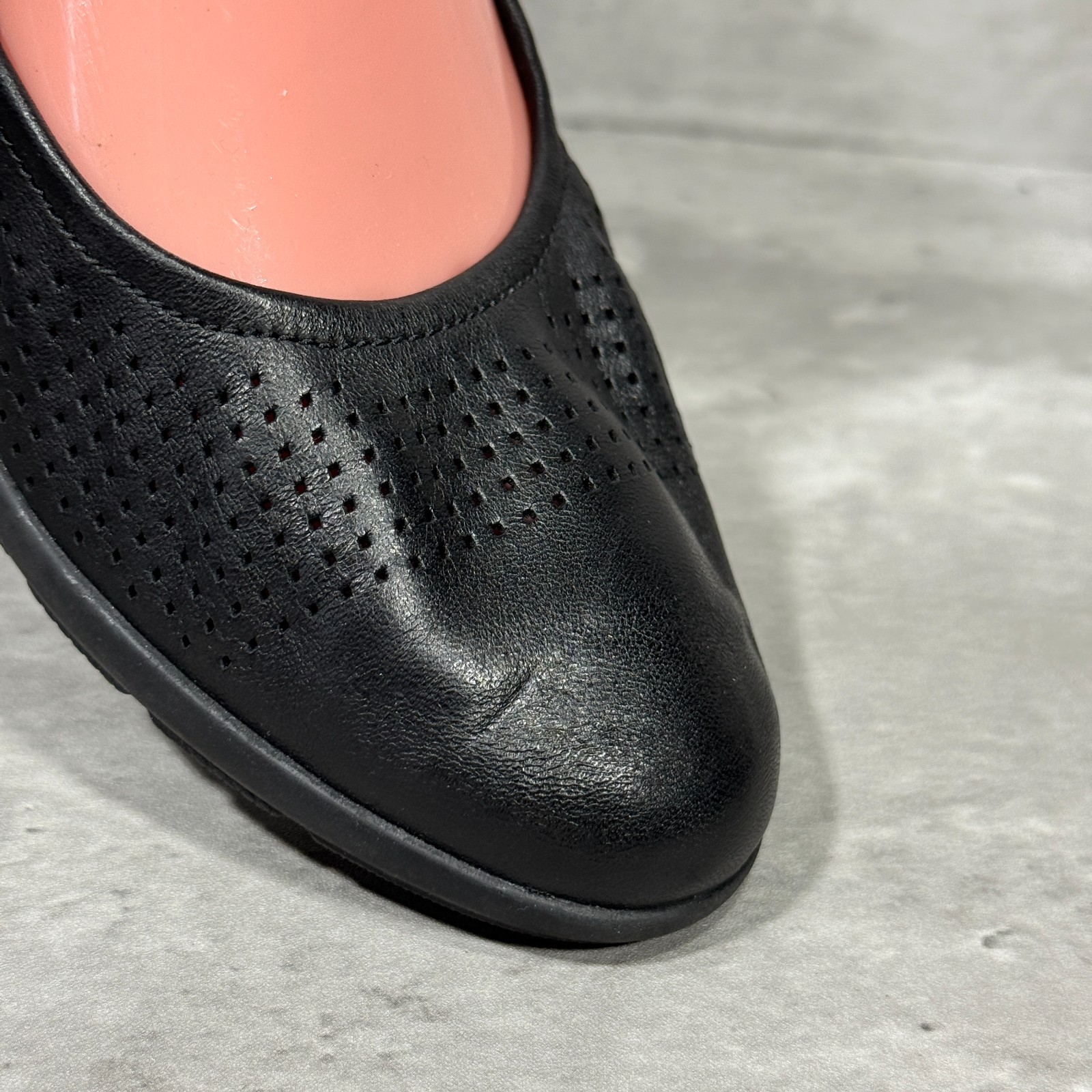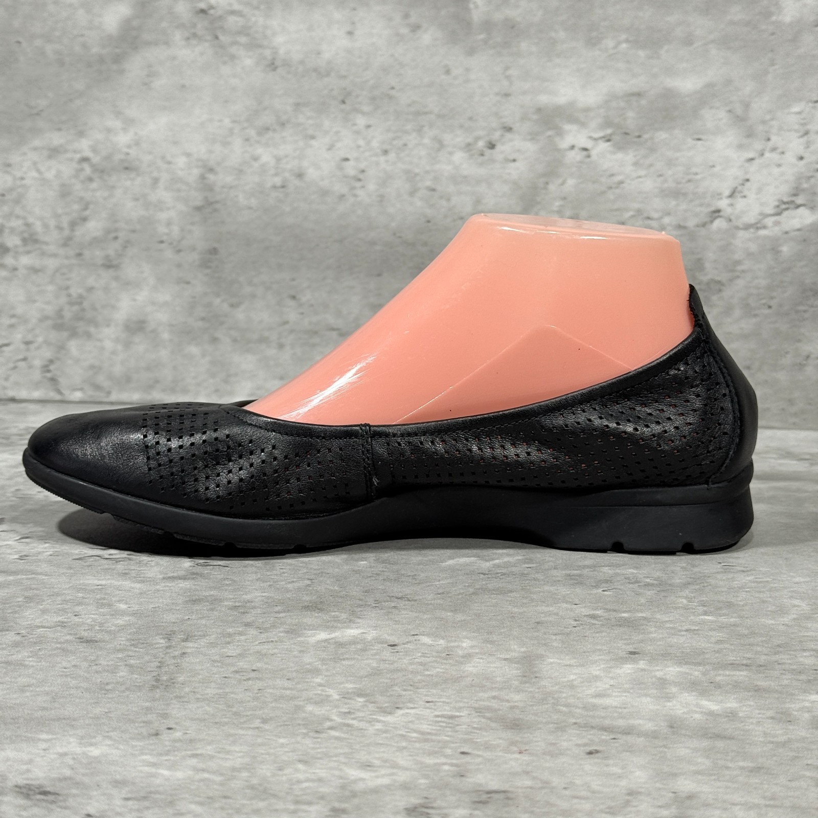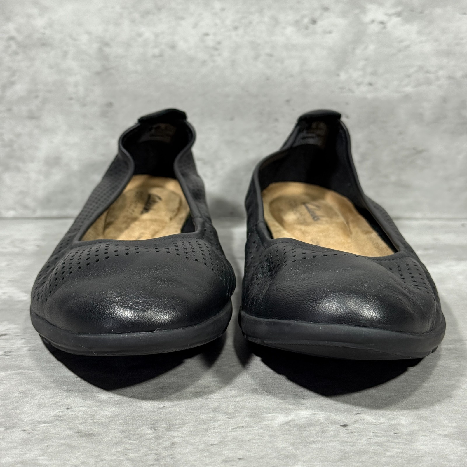 как выглядит Clarks Collection Black Perforated Leather Flats Shoes Slip On Womens Size 8 M фото