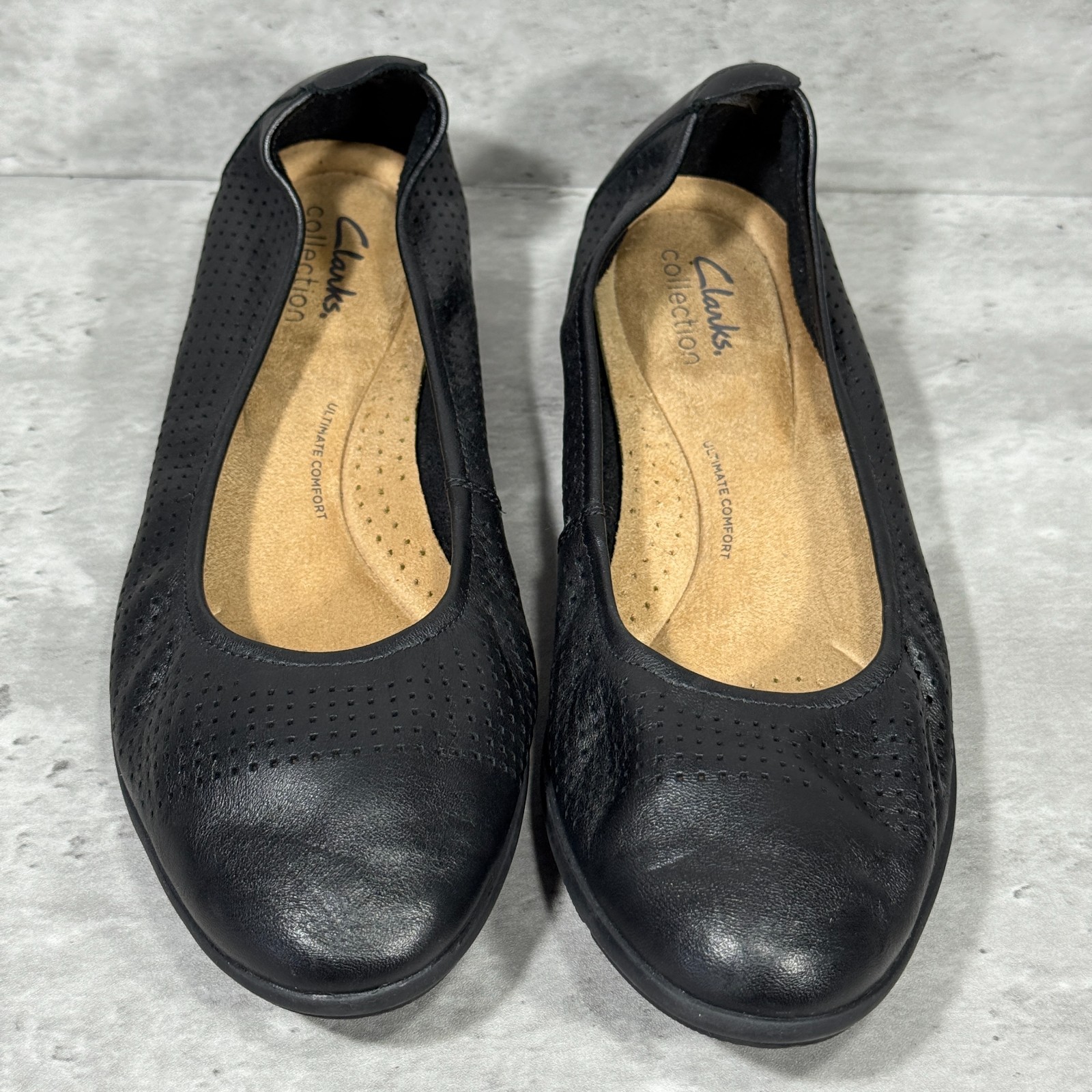 Clarks Collection Black Perforated Leather Flats Shoes Slip On Women's Size 8 M