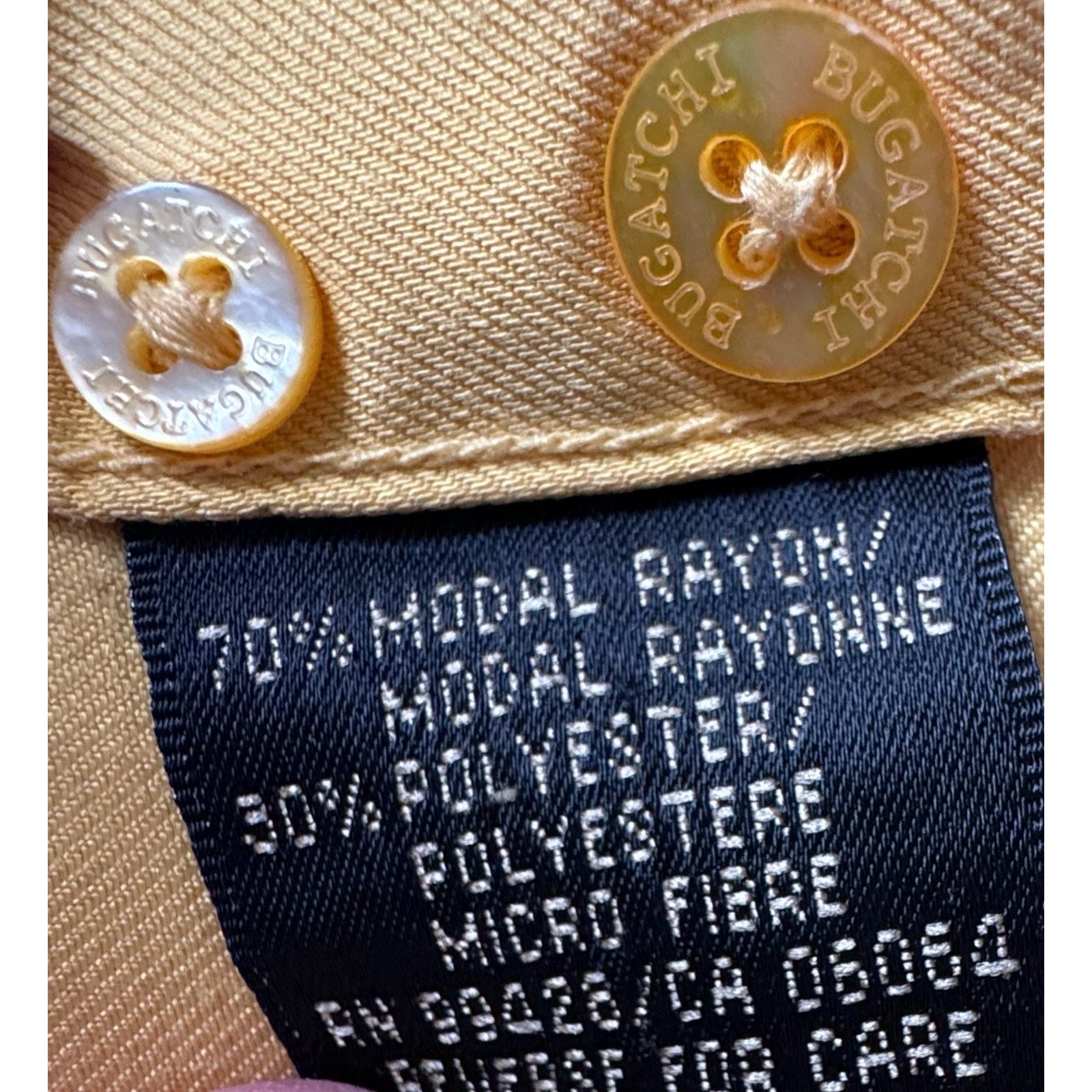 как выглядит Bugatchi Uomo short sleeve button up shirt Mustard Yellow Men s Size Medium фото