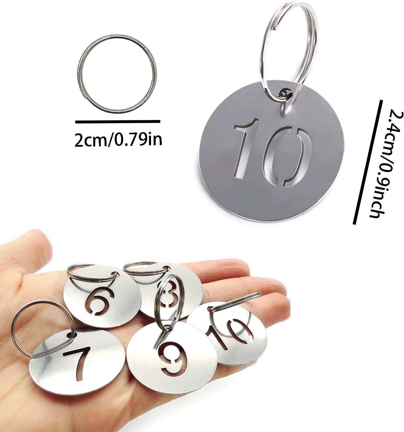 1-30 Key Tags with Labels Stainless Steel Numbered 0.9 0.27 inches, Silver