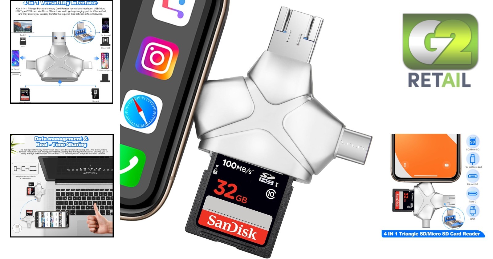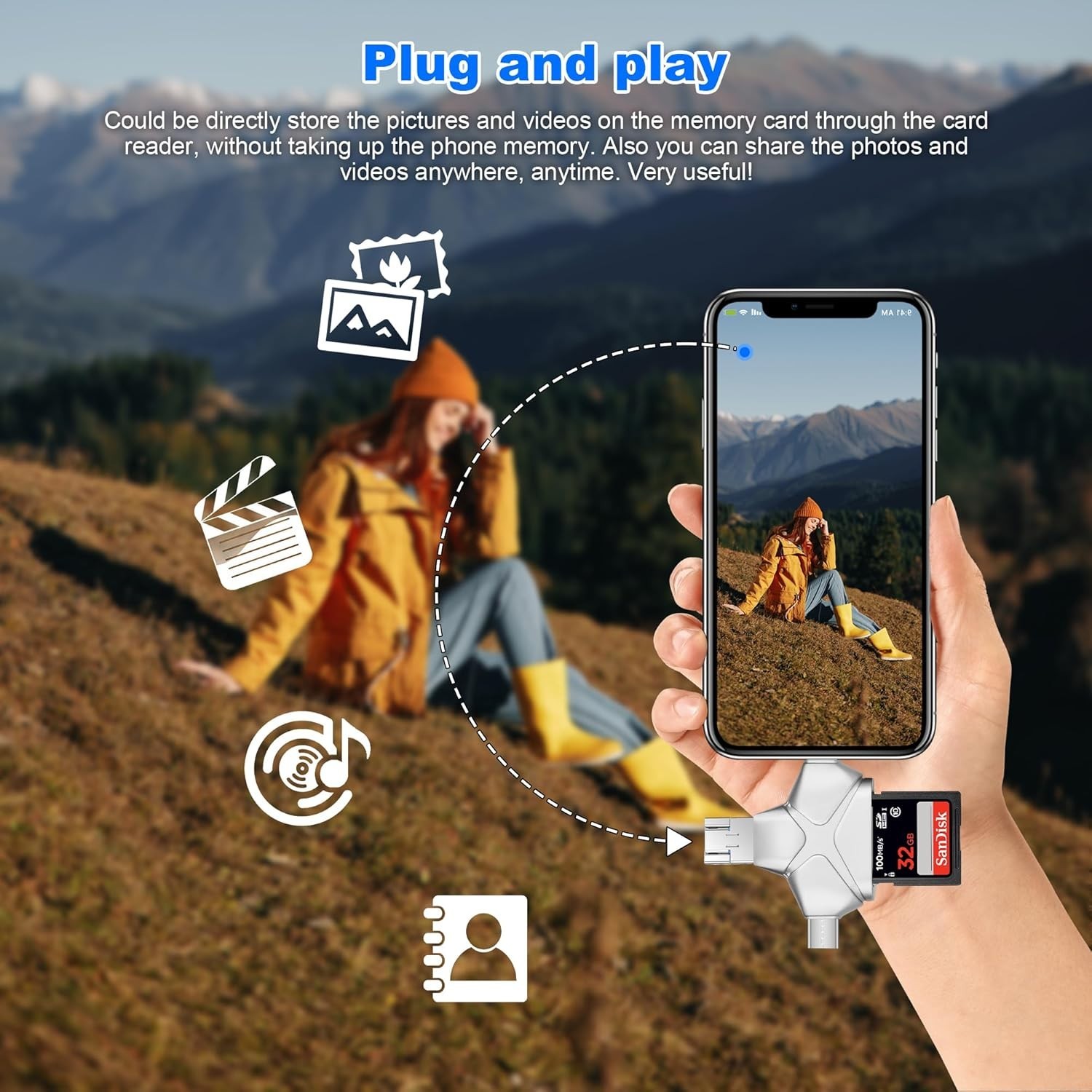 Effortless 4-in-1 Card Reader for SD/Micro SD - No App Needed, Fast Transfer