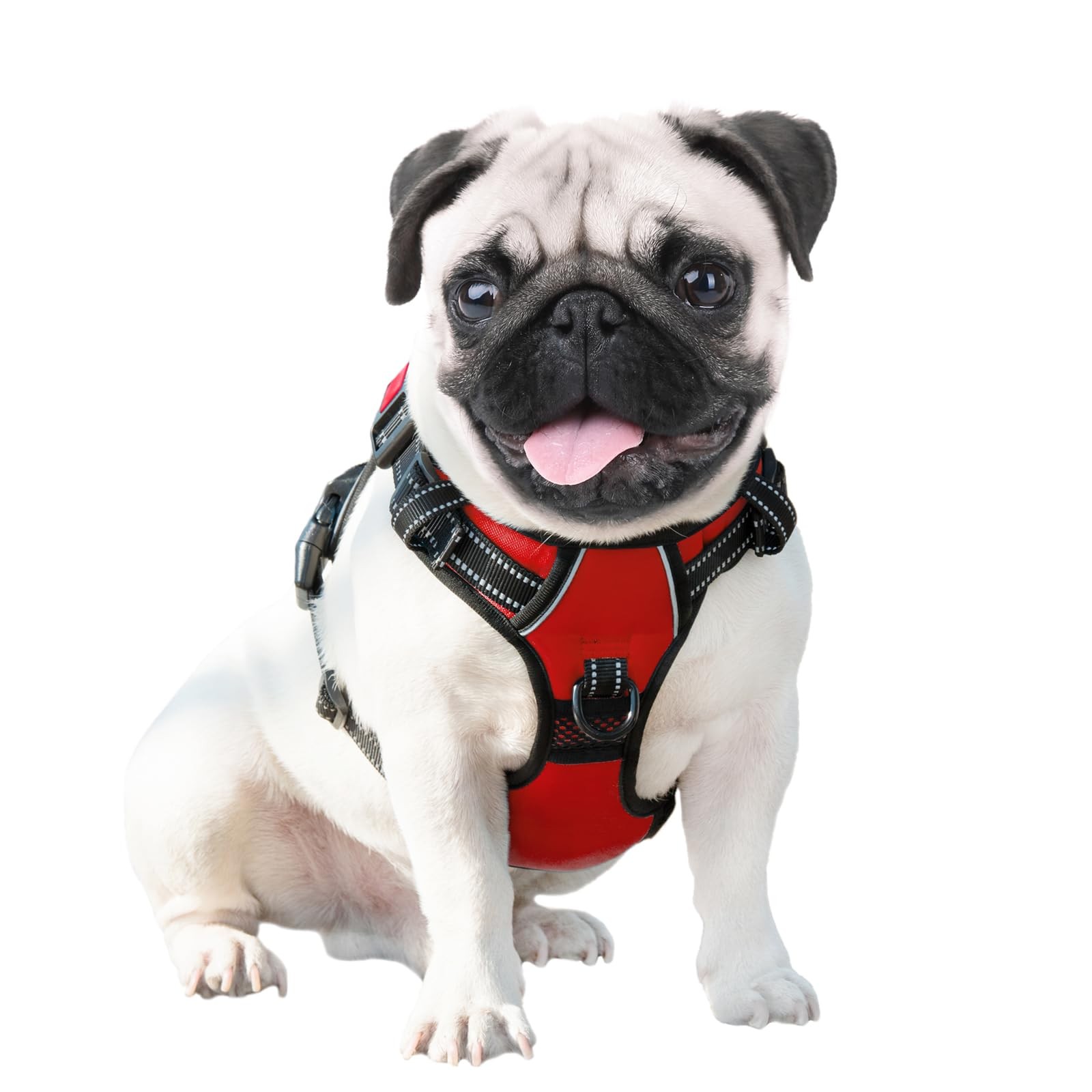 PHOEPET No-Pull Small Dog Harness Reflective Front-Clip Vest Red Adjustable - Si