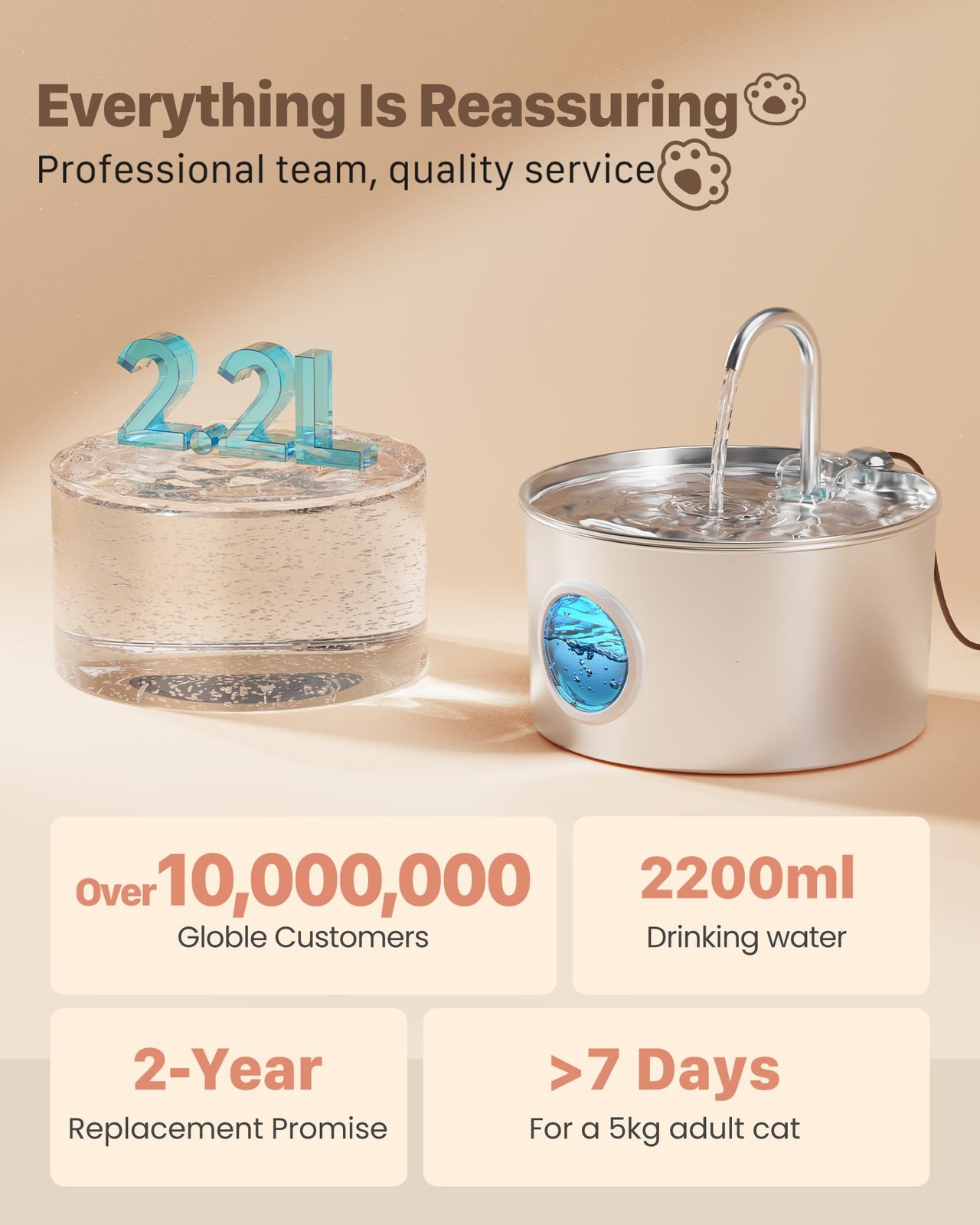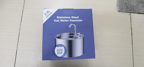 Stainless Steel Cat Water Fountain 74oz/2.2L Quiet Pet Bowl 6 Filters 3 Spon