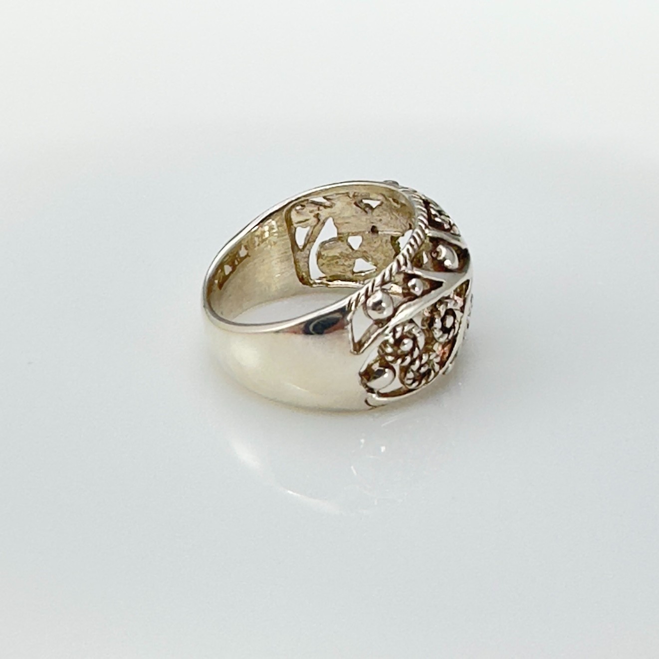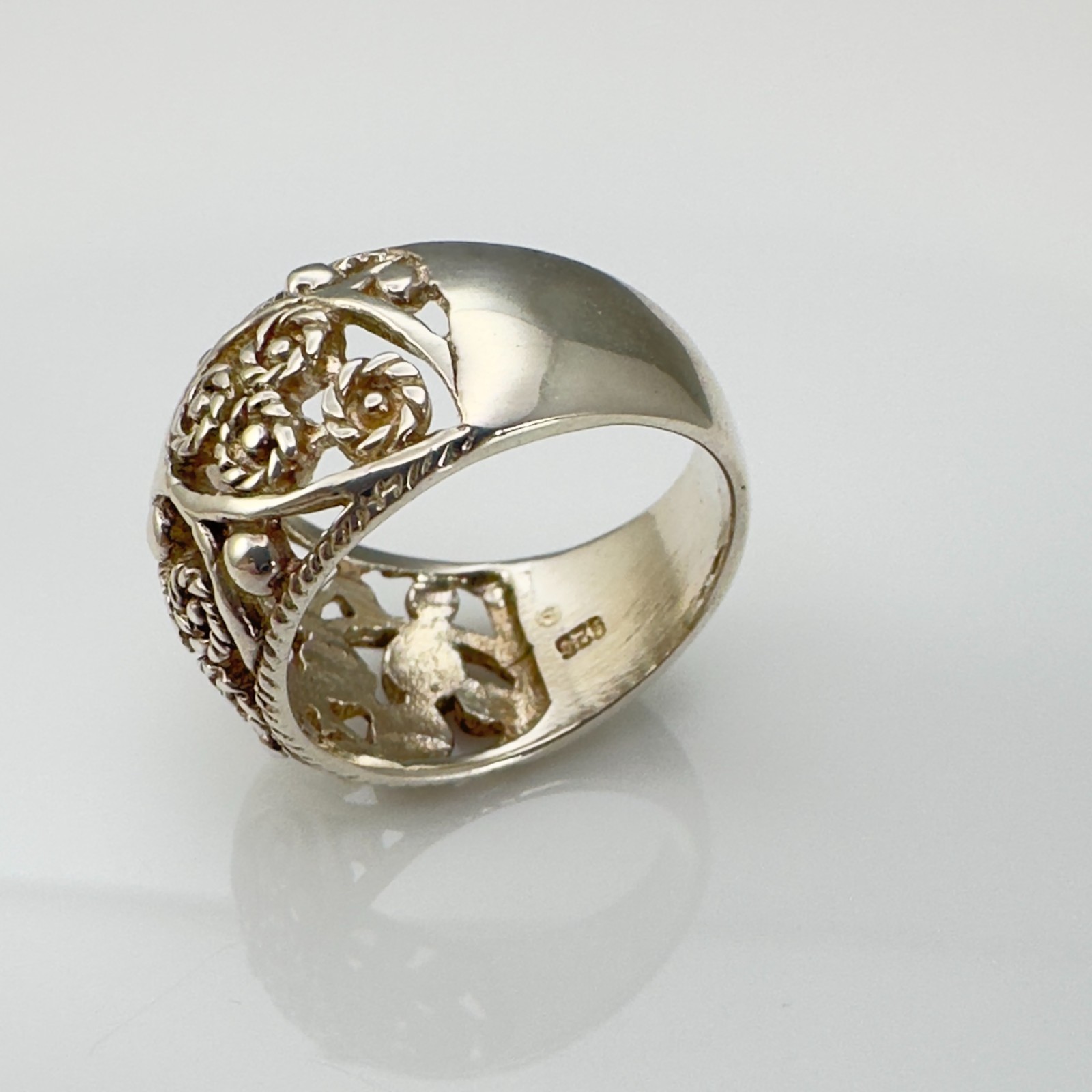 как выглядит Vintage Style 925 Sterling Silver Filigree Floral Wide Band Ring Size 6.25 фото