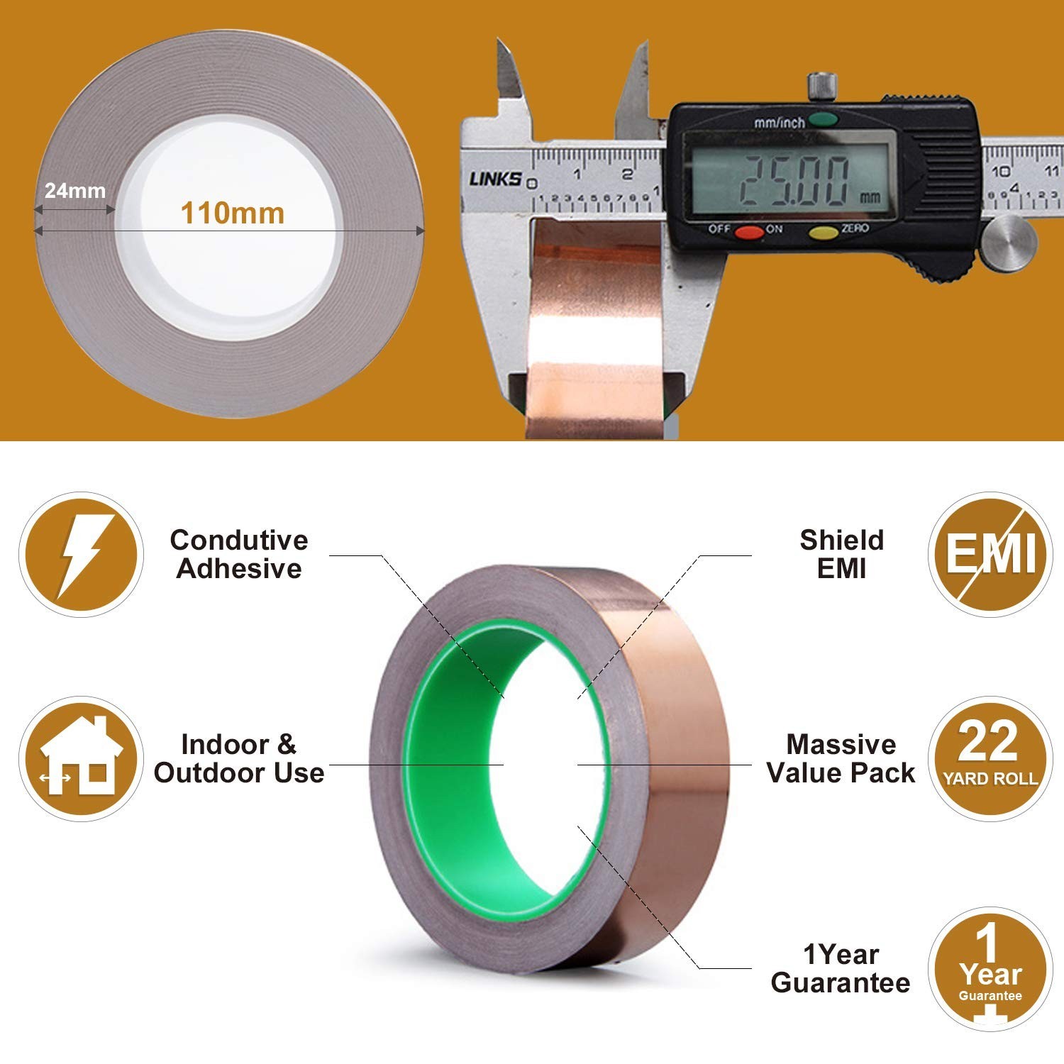 как выглядит Copper Foil Tape 1"X66ft with Conductive Adhesive for Guitar EMI Shielding.. фото