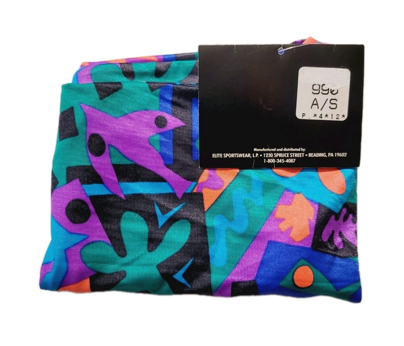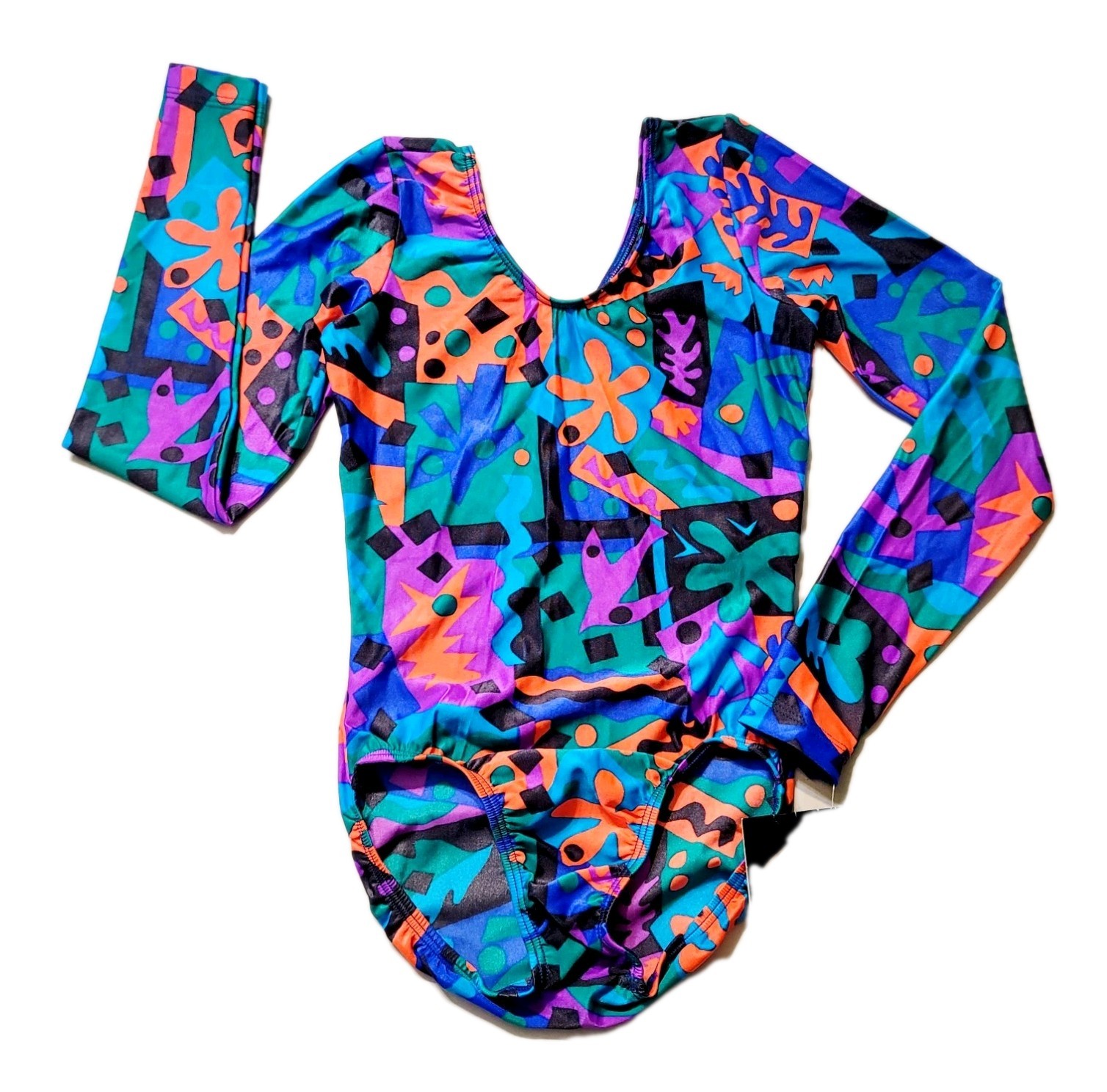 GK Elite VTG Geometric 80s Color Splotch LS Leotard Purple Green Size AS Adult S