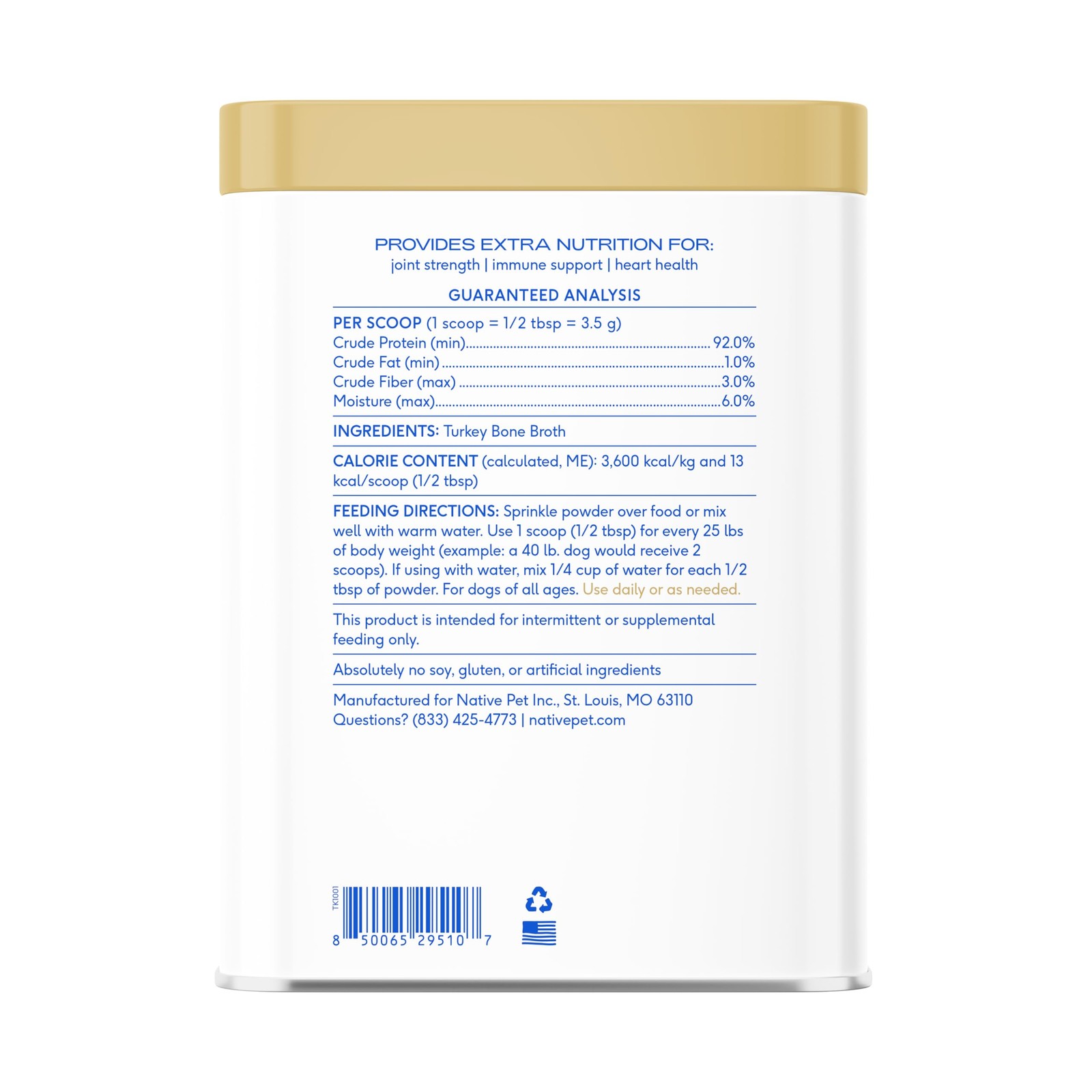 как выглядит Native Pet Turkey Bone Broth Powder Dog/Cat Food Topper 96ct Joint Immune фото