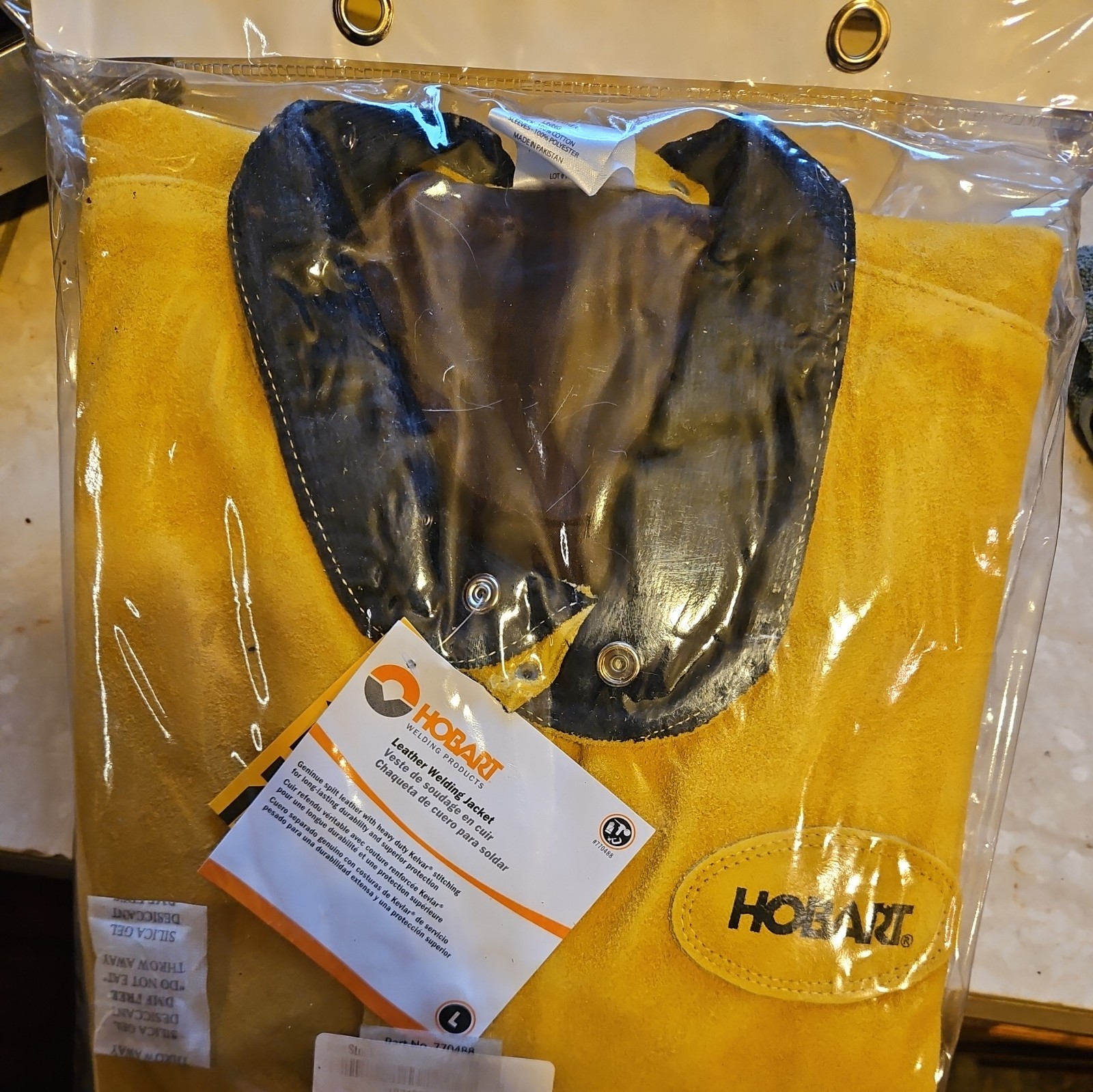 как выглядит New Hobart Mens Large Cowhide Leather Welding Jacket Mustard welders фото