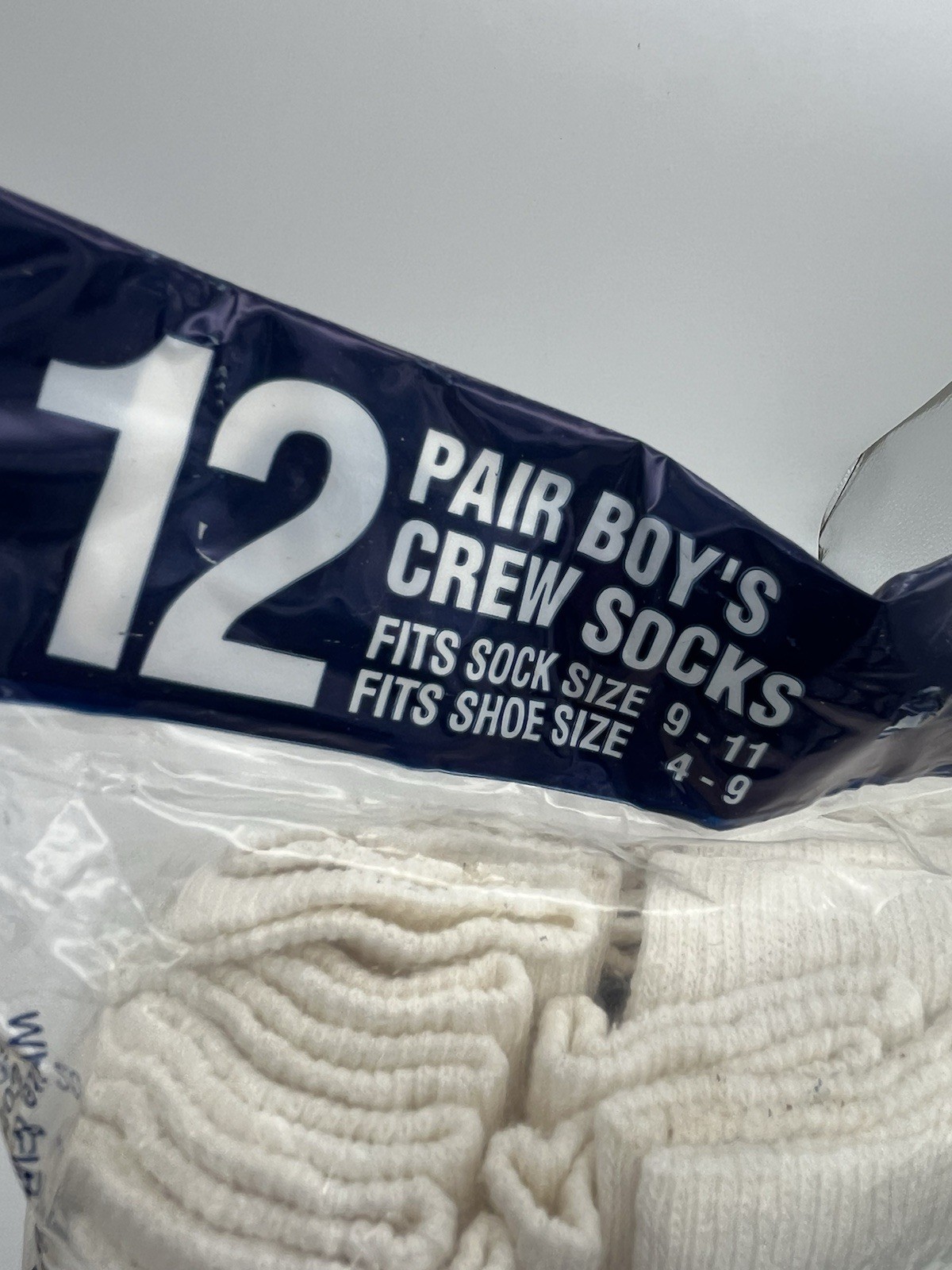 Vintage Generra Boy's Cotton Crew Socks Fits Shoe 4-9 White Cotton Blend 12pk