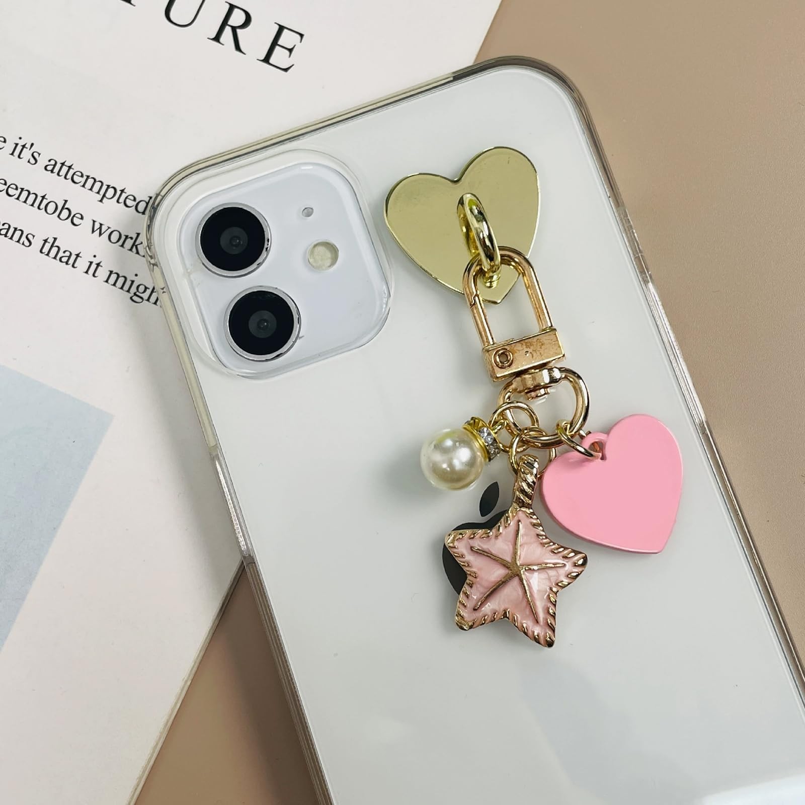 12 Pcs Phone Charm Hook Heart-Shaped Universal Adhesive Metal Hook Phone Keyc...