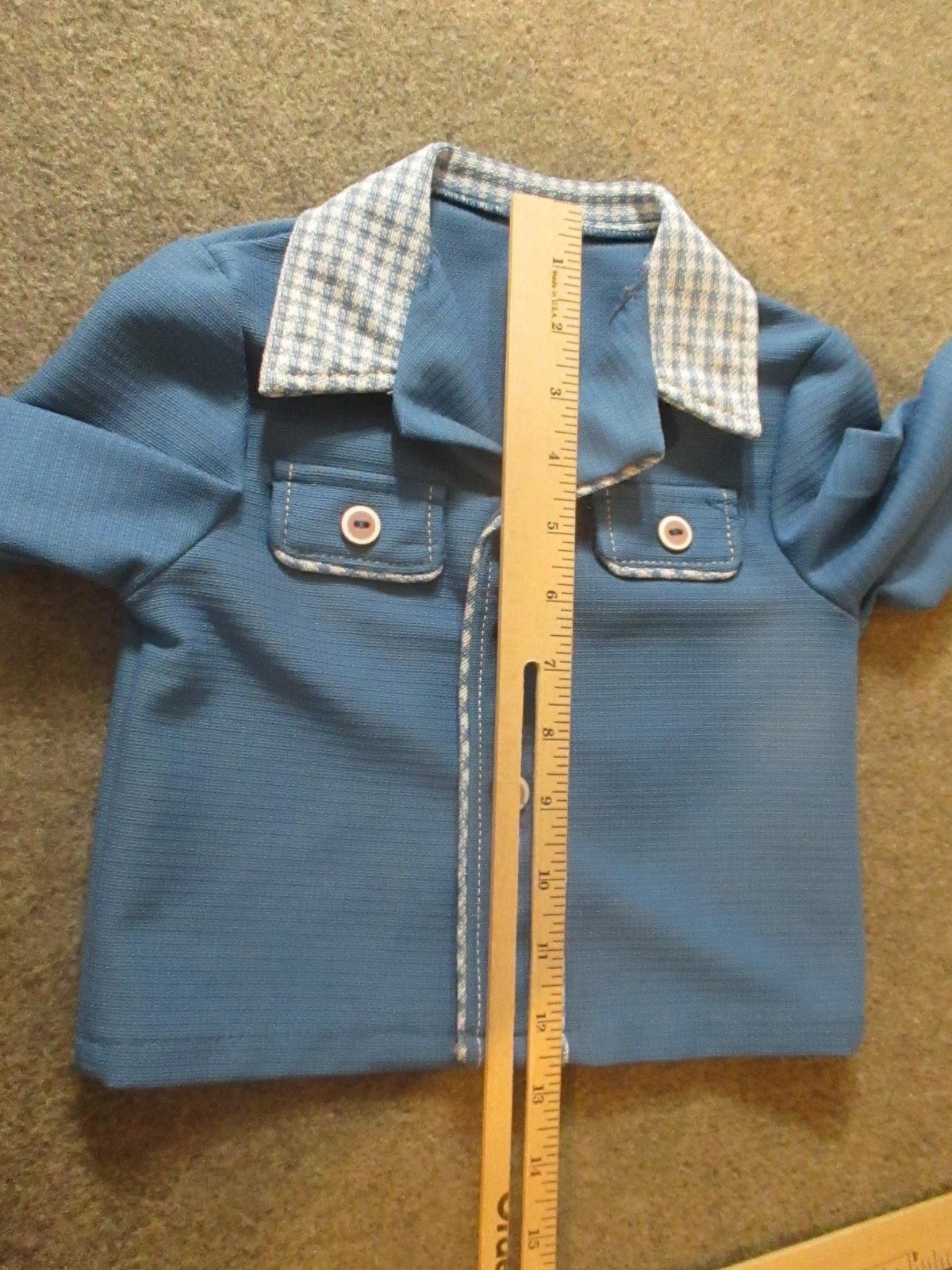 как выглядит Vintage Toddler Boys Outfit Set Jacket Pants Blue Gingham Check 70s Retro фото