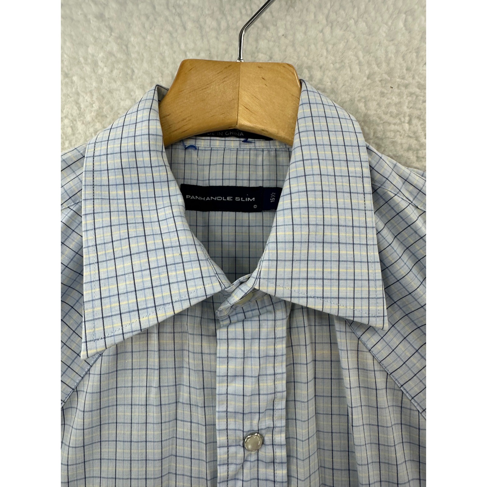 как выглядит PANHANDLE SLIM Mens Light Blue Plaid Western Snap Button Shirt Size 15 1/2 фото
