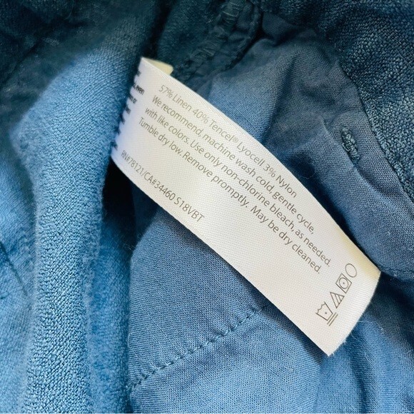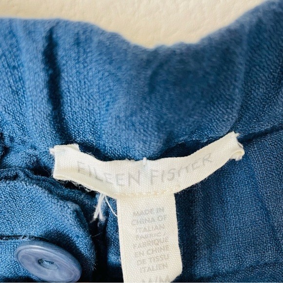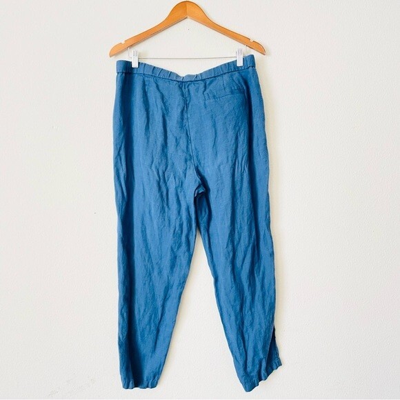 как выглядит Eileen Fisher MEDIUM linen blend blue high rise pocketed pants фото