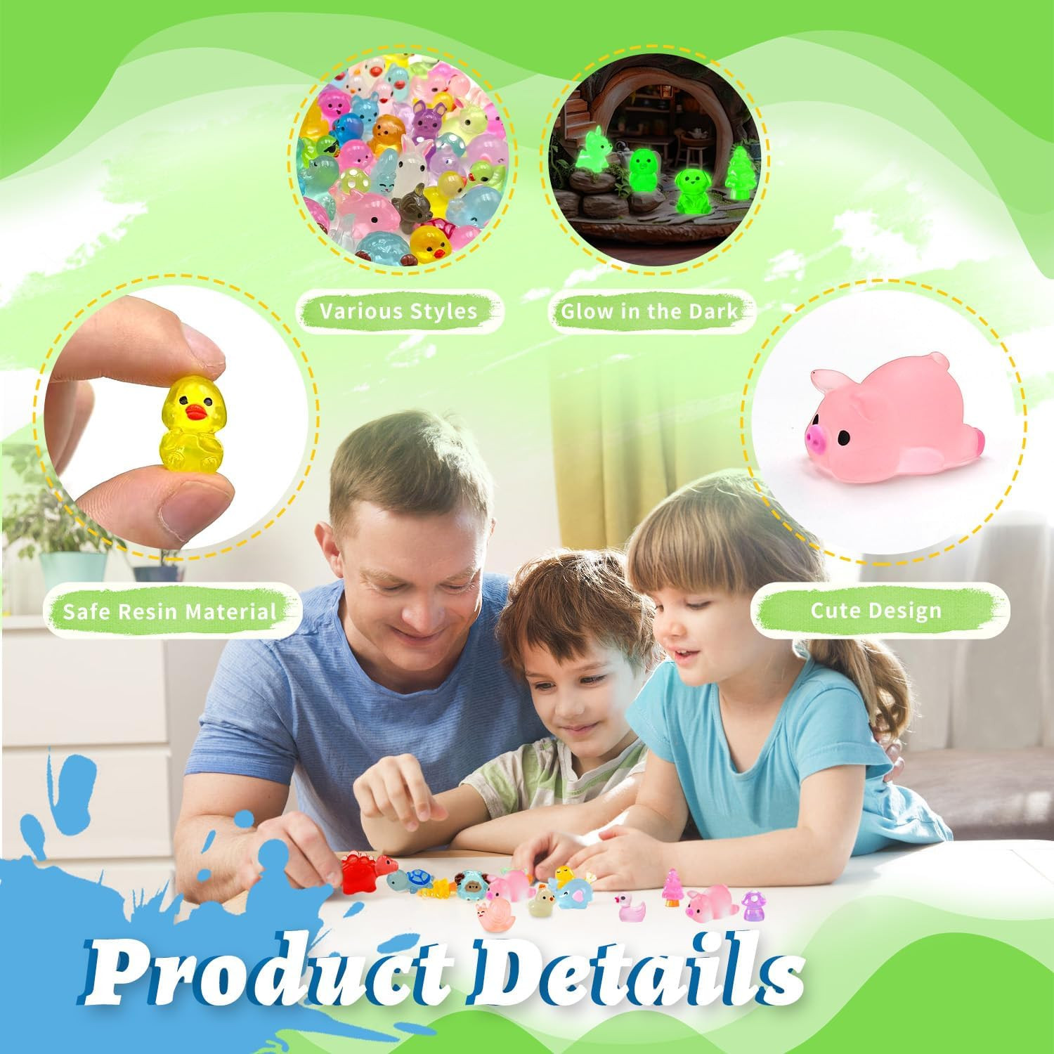 как выглядит 105 Pcs Mini Resin Animals 21 Styles Bulk to Hide Miniature Figures Luminous Tin фото