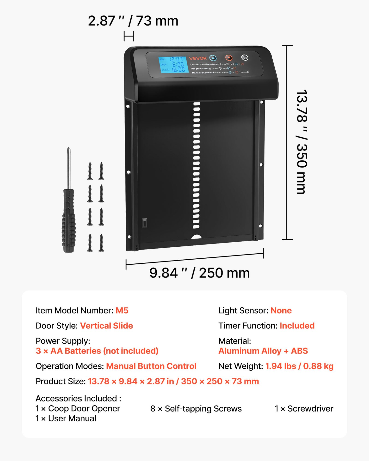Battery Powered Automatic Chicken Coop Door with Timer Anti-Pinch Design