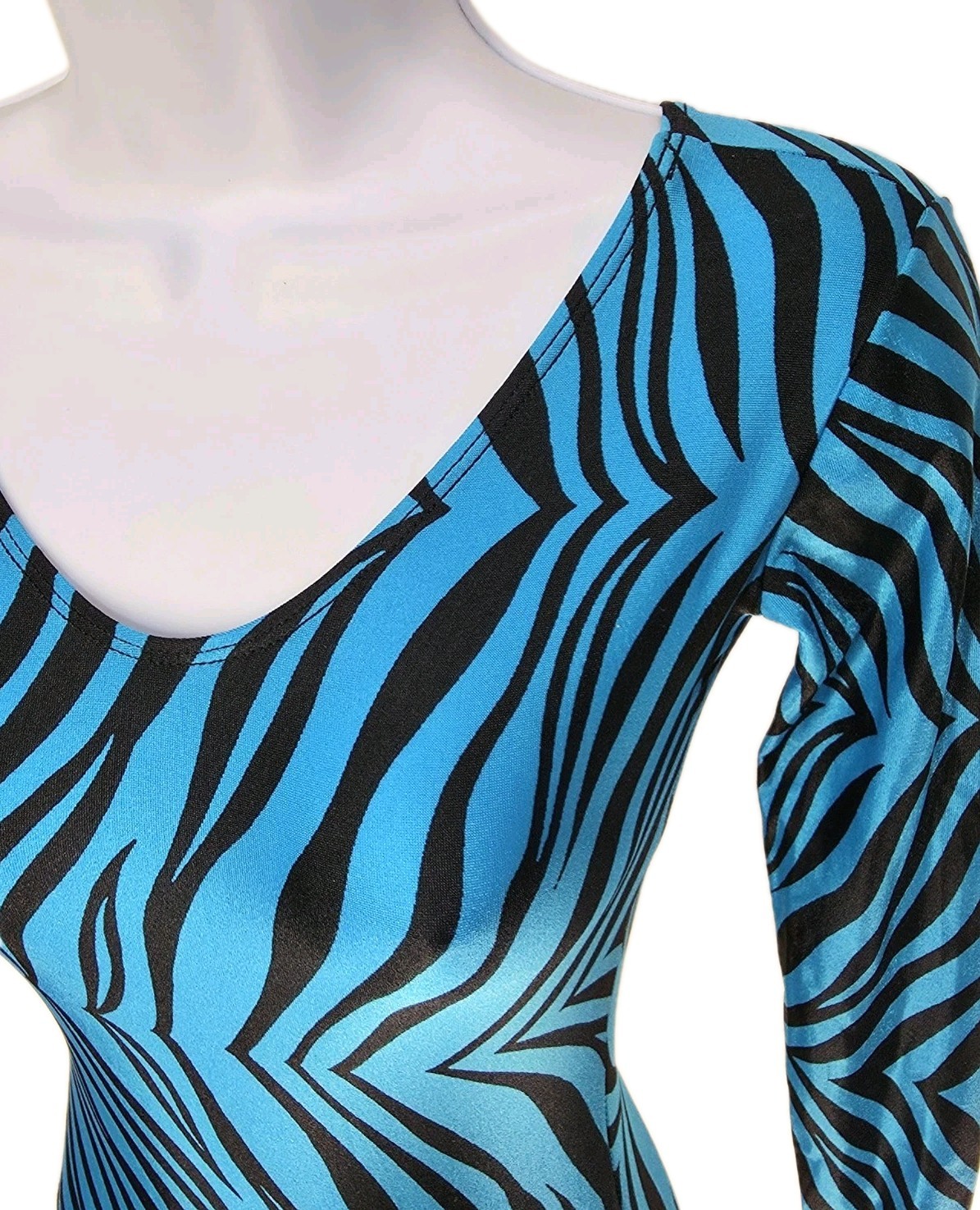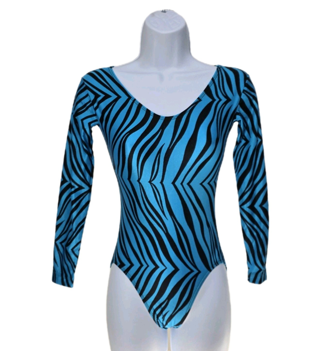 GK Elite VTG 90s Zebra Print LS Leotard Bodysuit Size AXS Adult XS Blue NWT