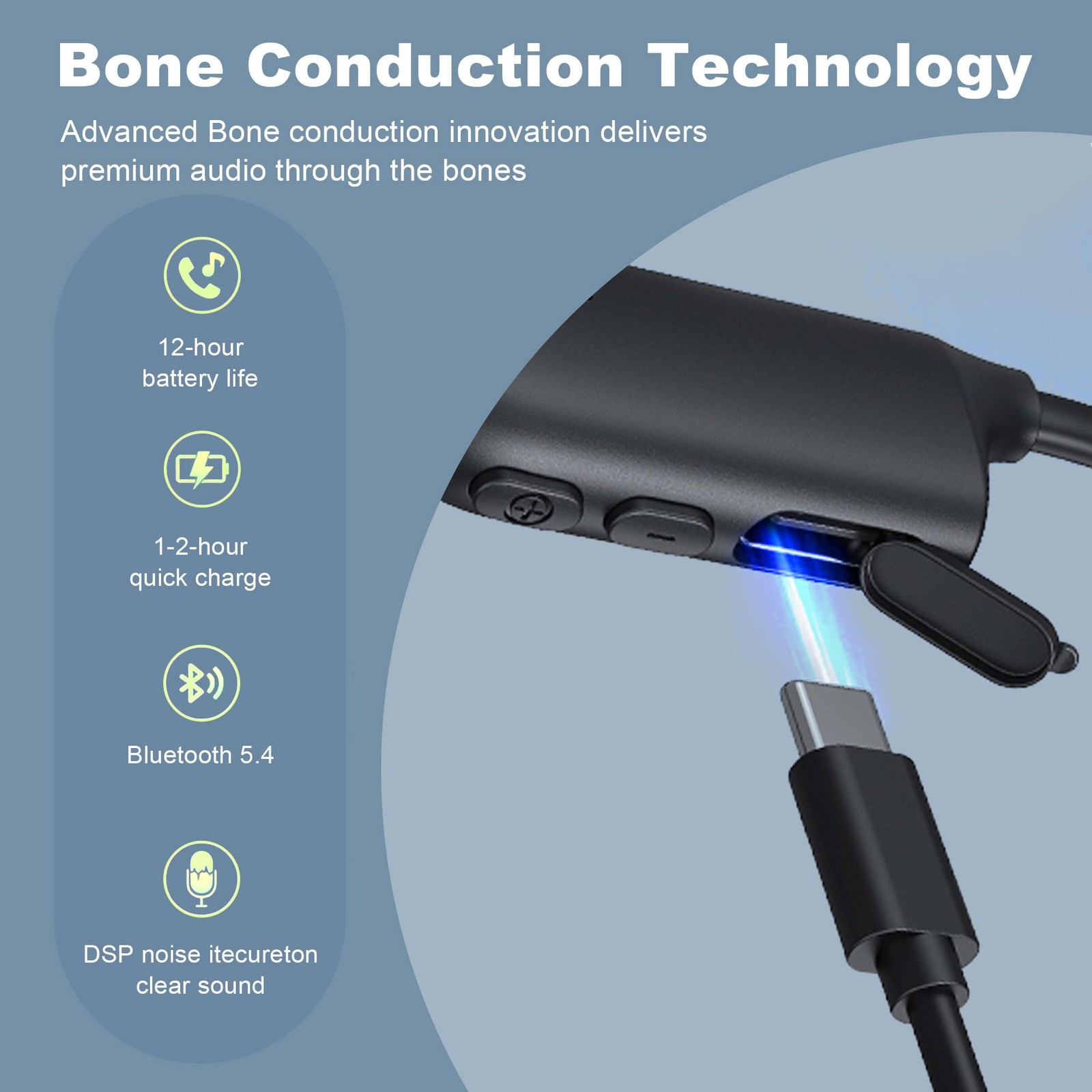 как выглядит Bone Conduction Headphones, Bluetooth Open Ear Headphones with Mic, Bone Cond... фото