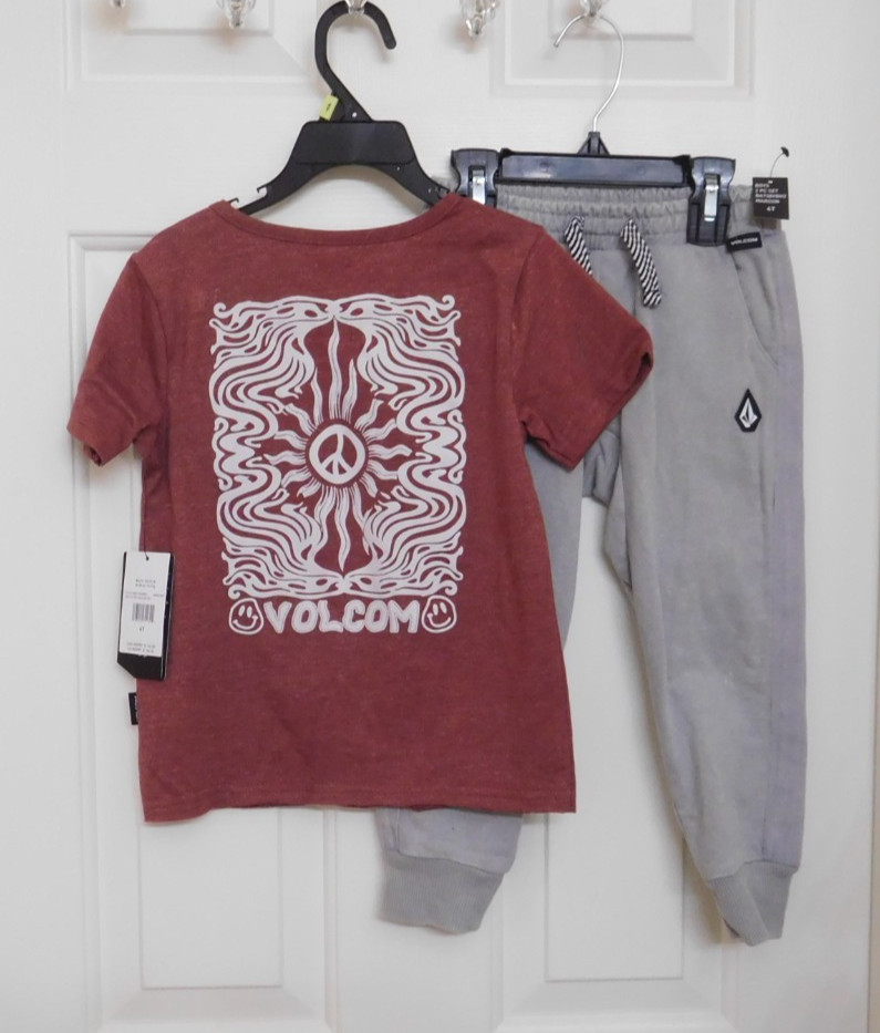 NWT 2pc Volcom Maroon Front Back Logo Shirt Joggers Set sz 4t
