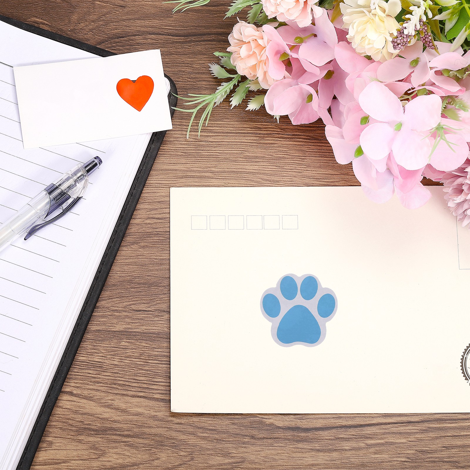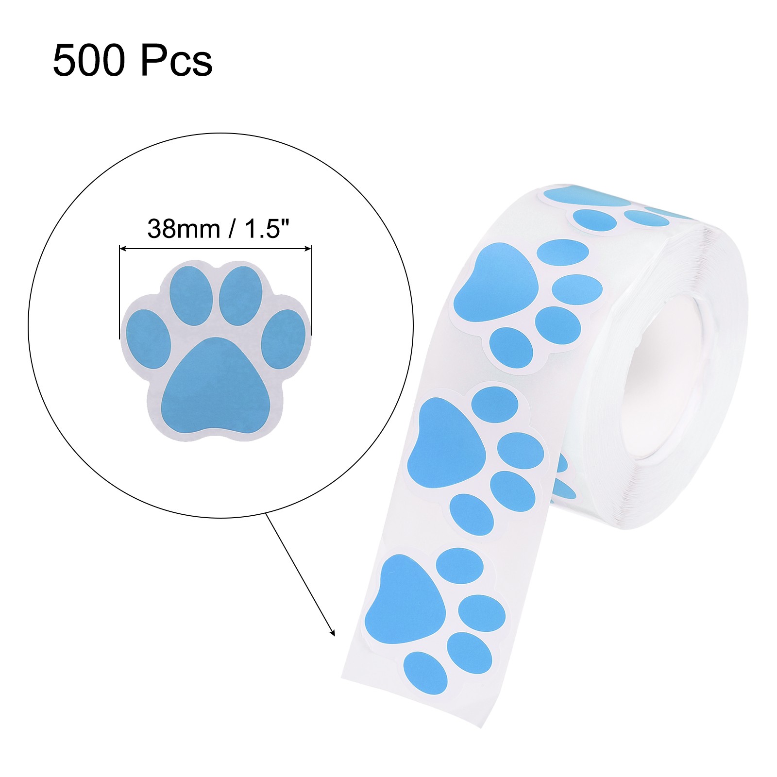 500Pcs Adhesive Label Stickers Blue Paw Prints Stickers 1.5 Stickers