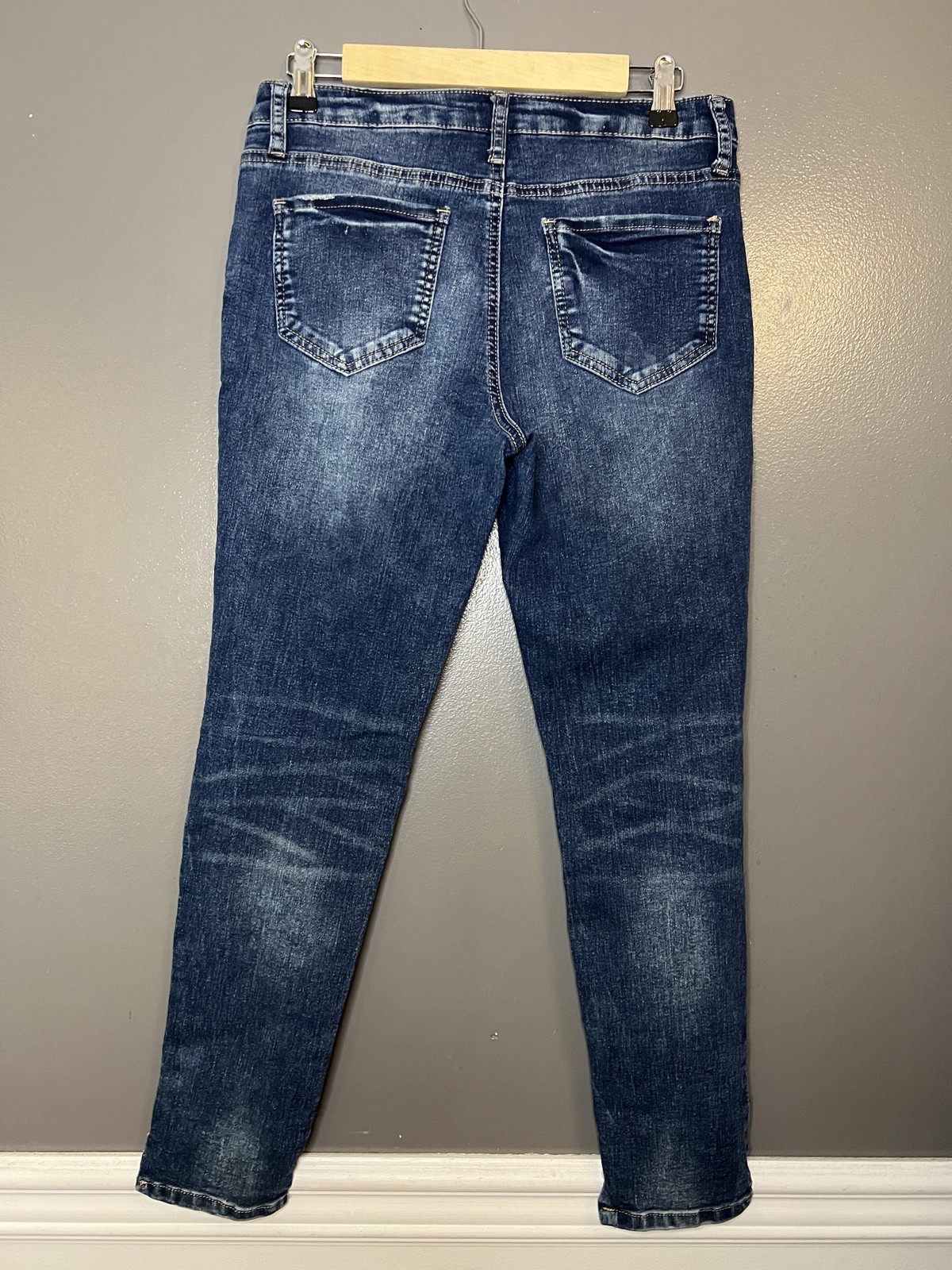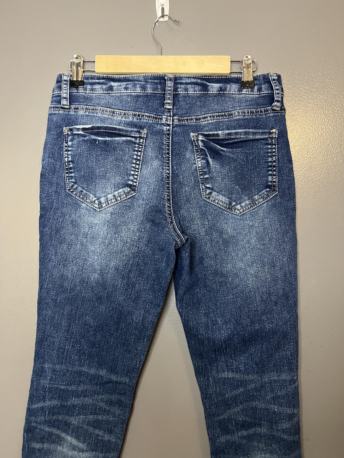 как выглядит Rampage Sophie Mid Rise Skinny Jeans Womens Blue Stretch Released Raw Hem Ankle фото