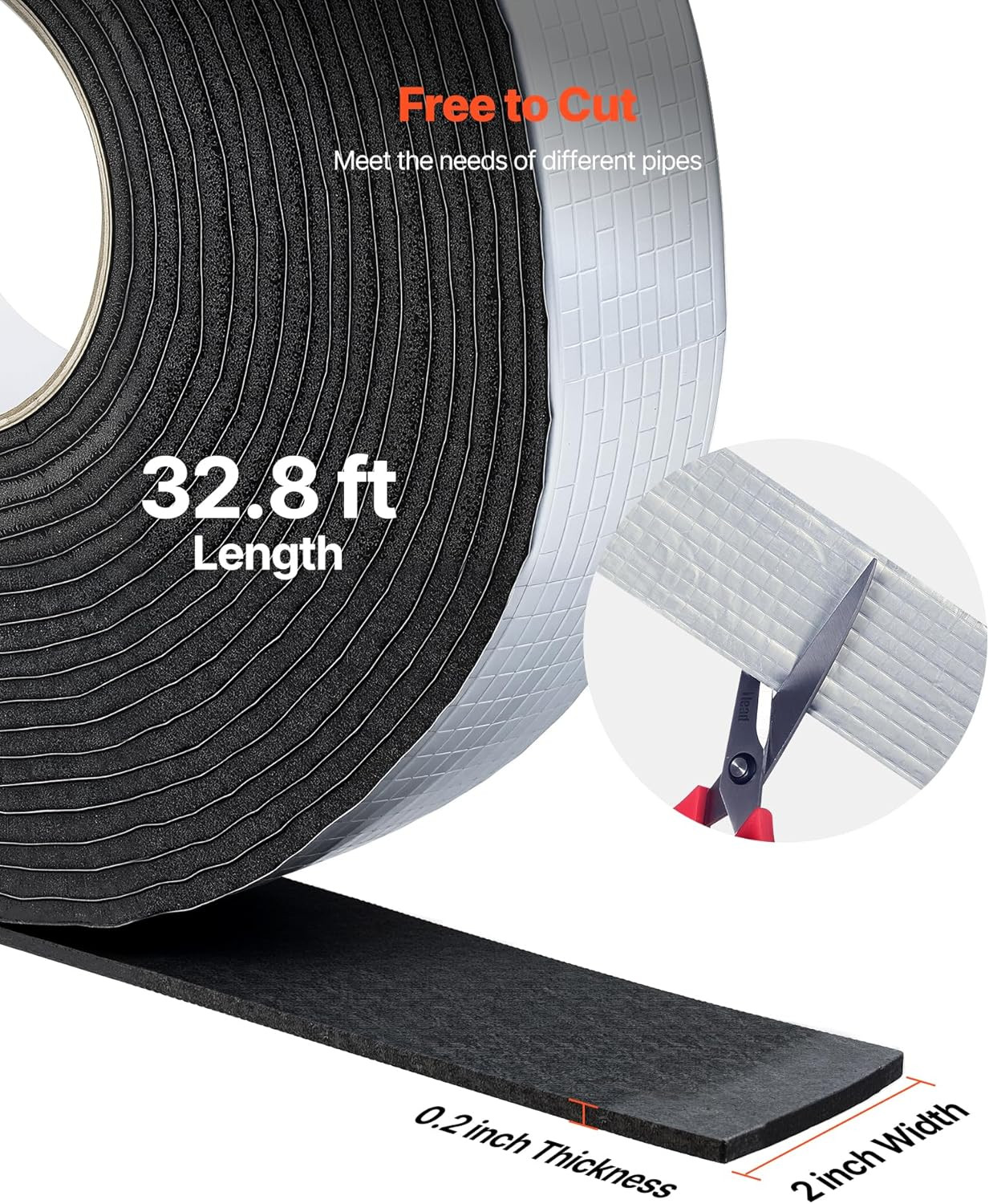 • 32.8FT x 2" Pipe Insulation Wrap Self-Adhesive Foam w/ Aluminum Foil for Pipes