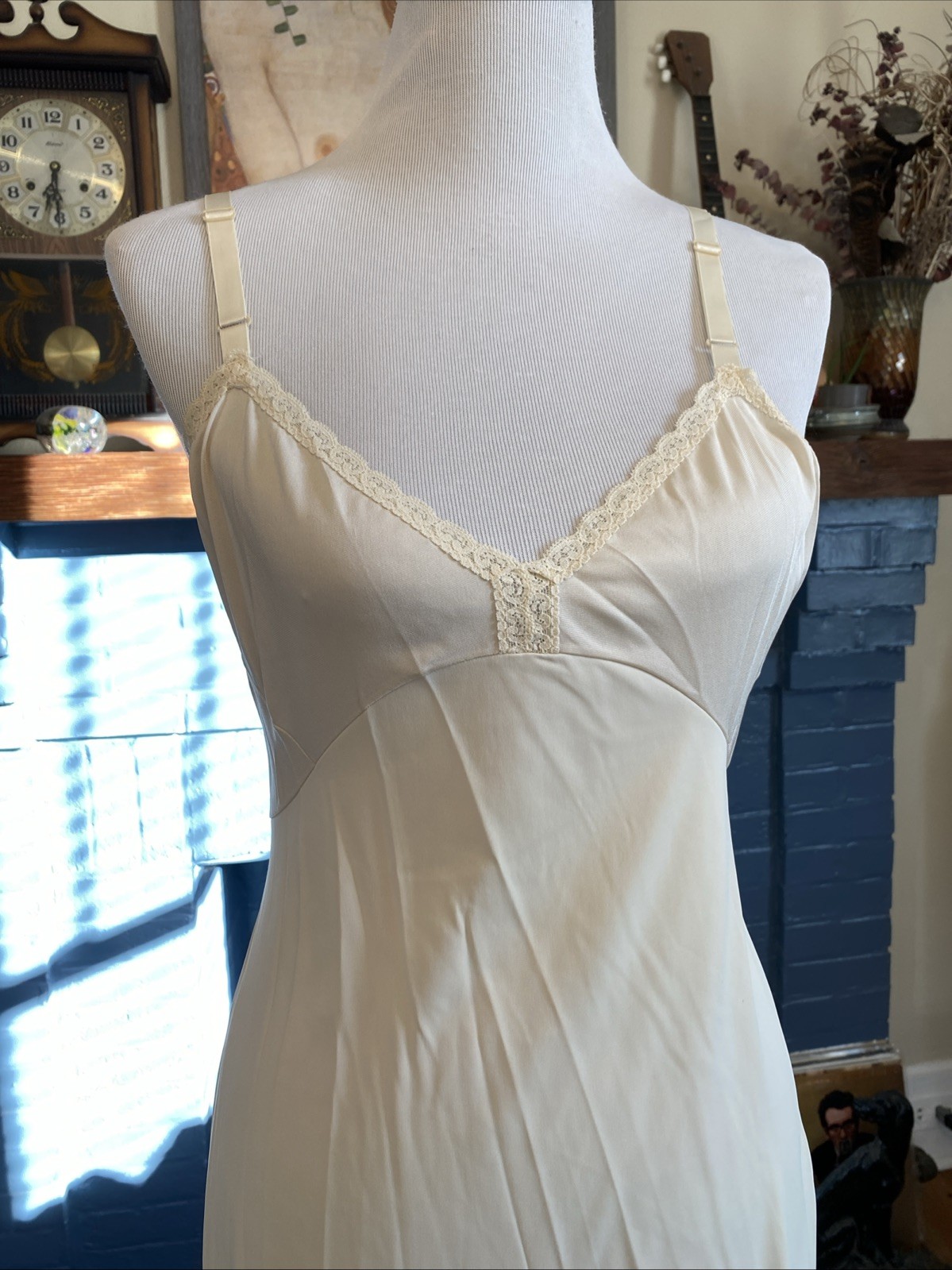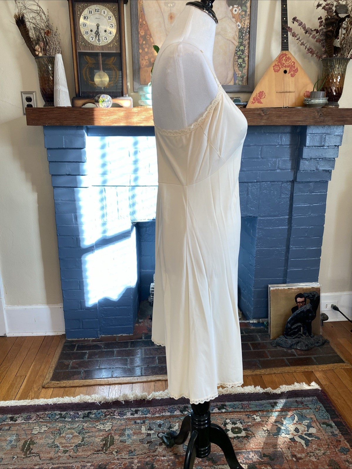 Vintage Shadowline Women's L / XL Nylon Full Slip Lace Ivory Size 38