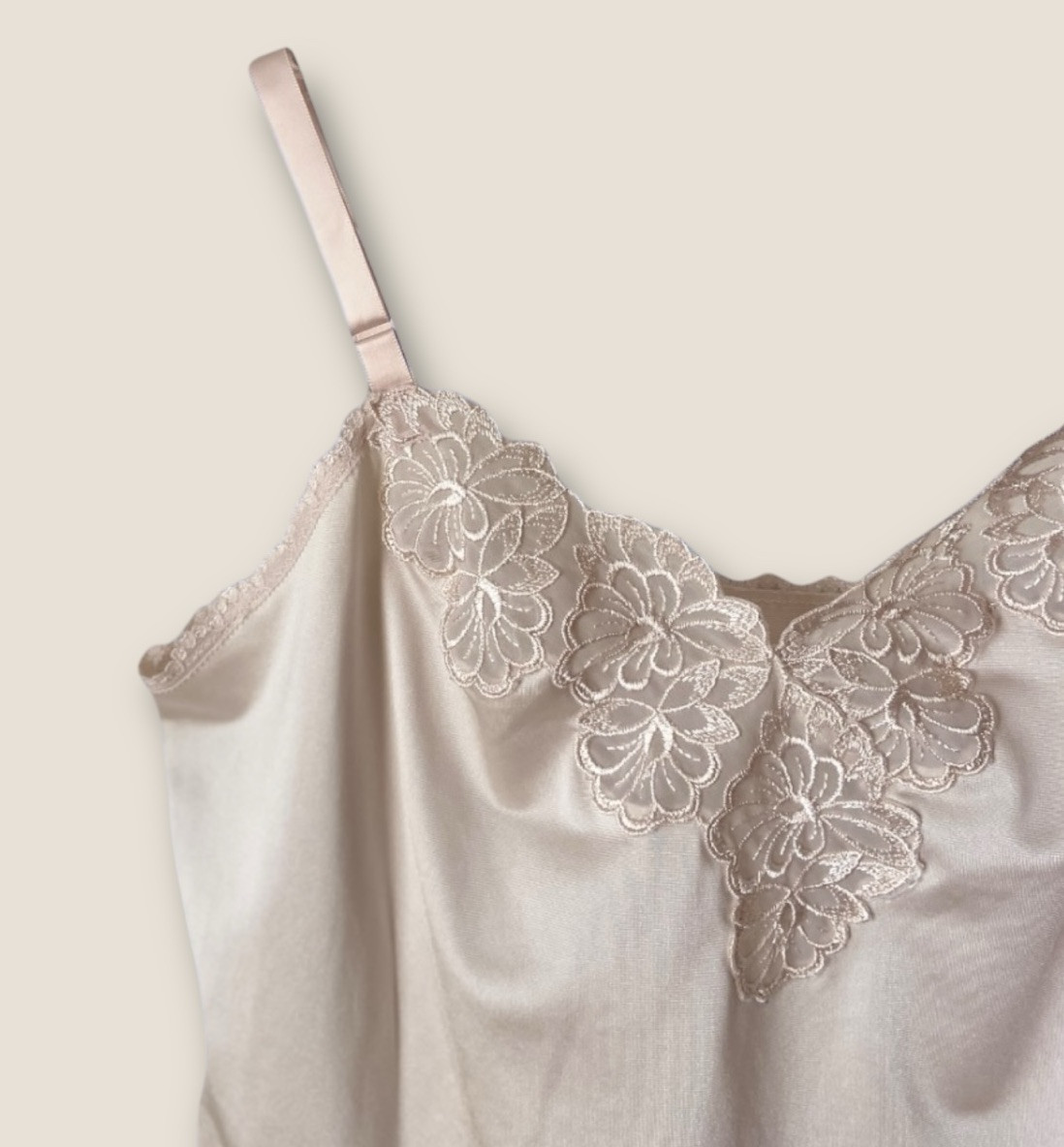 Shadowline Camisole Women Sz 34 Ivory Satin Floral Lace Lounge Bedroom Sleepwear