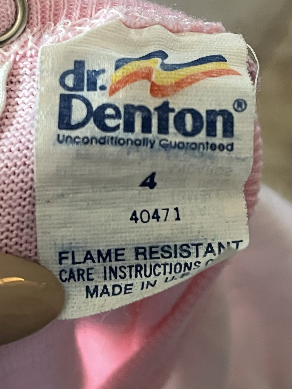 Vintage Dr Denton Girls Size 4 80 s PJ's Footed 2 Piece Set Flame Retardant