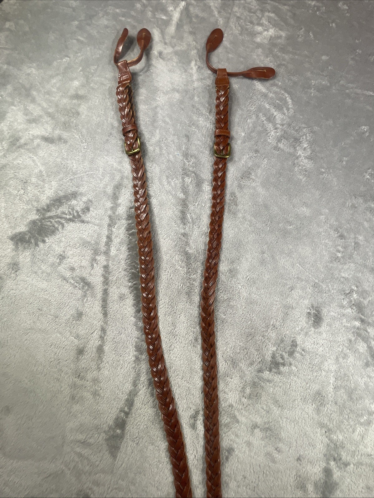Suspenders Braided Leather Adjustable Buckle Buttonhole Brown One Size