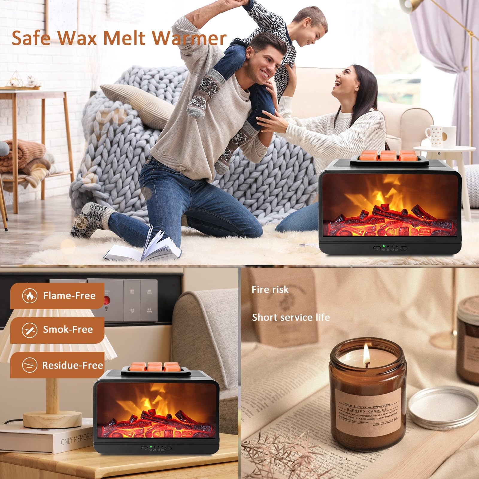 как выглядит Wax Melt Warmer for Scented Wax - 3D Dynamic Flame Fireplace Electric Wax War... фото