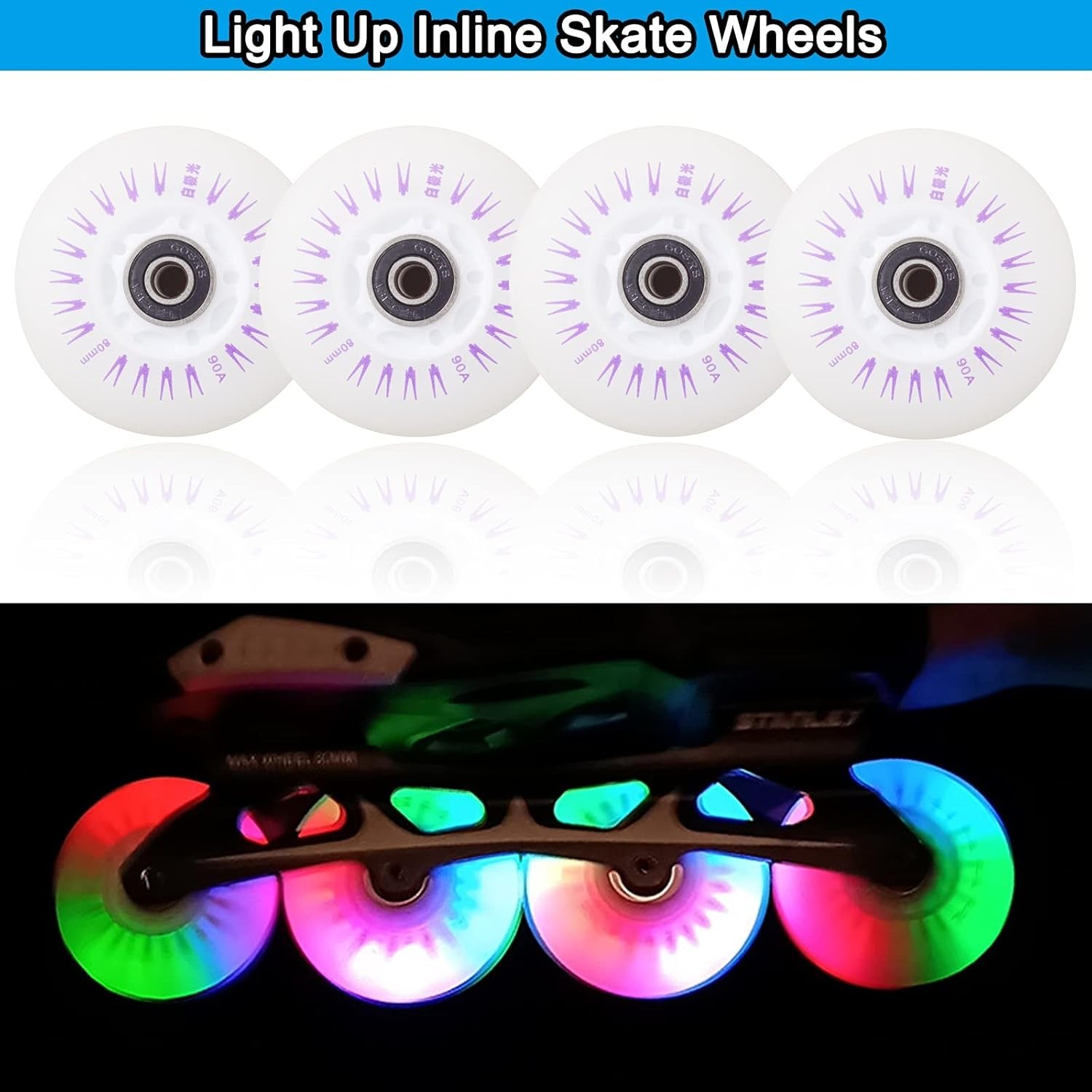 Light up Inline Skate Wheels Roller Blade Wheels 76mm/80mm with Bearings AB...