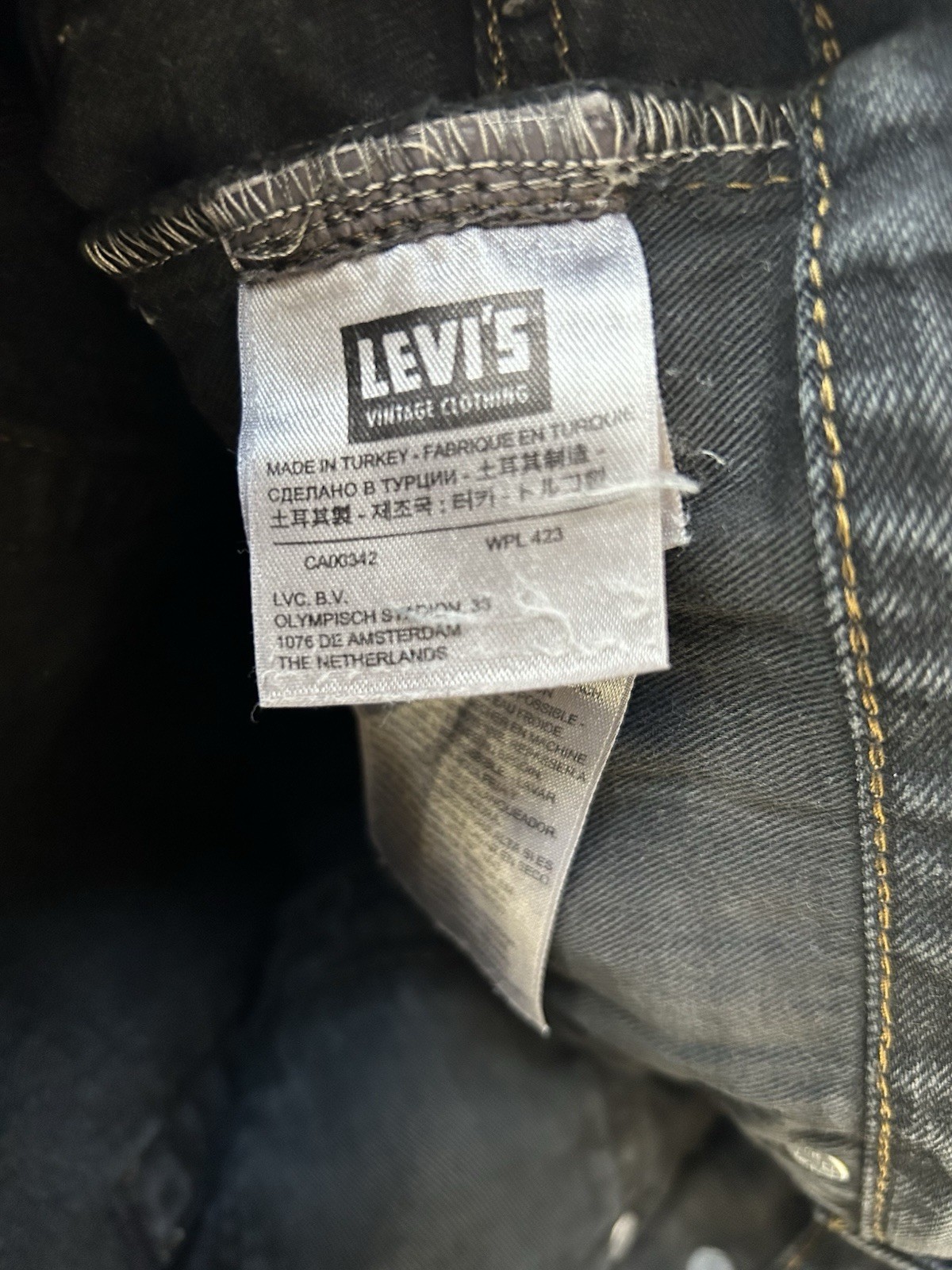 как выглядит Levi s LVC 505-0217 Selvedge Denim Jeans Black 32x29.5 Actual Patching фото