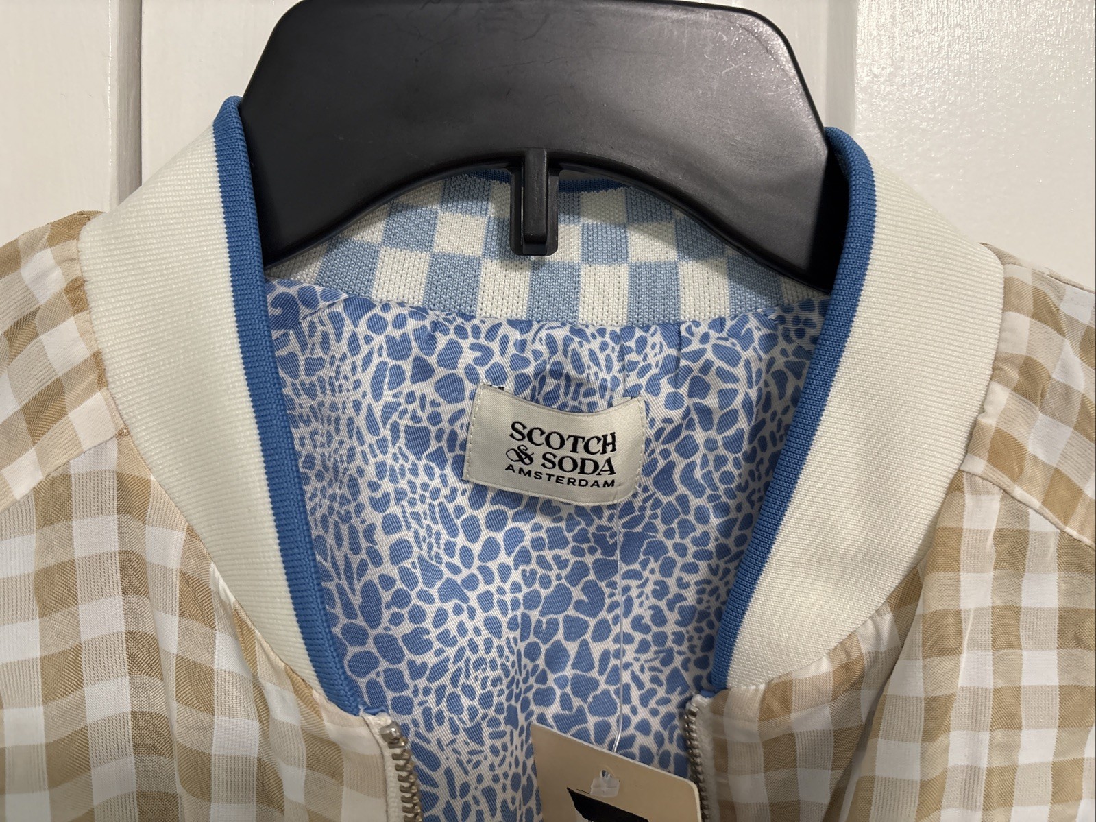 Scotch Soda Seersucker Reversible Bomber Jacket Tan/White Check Size M