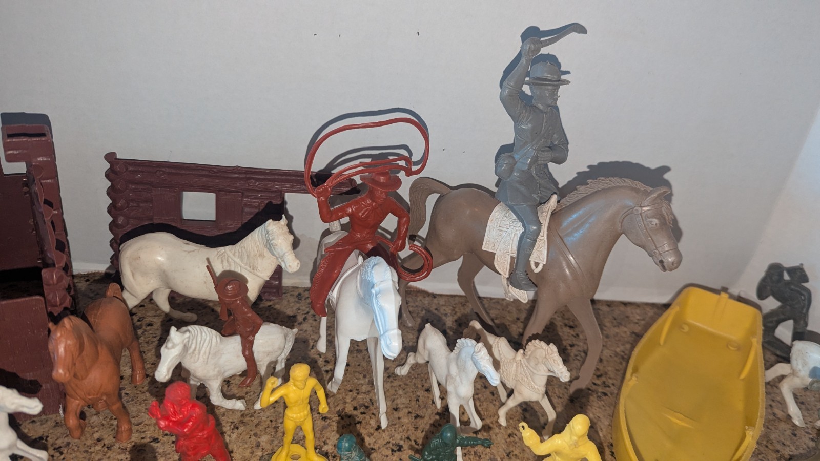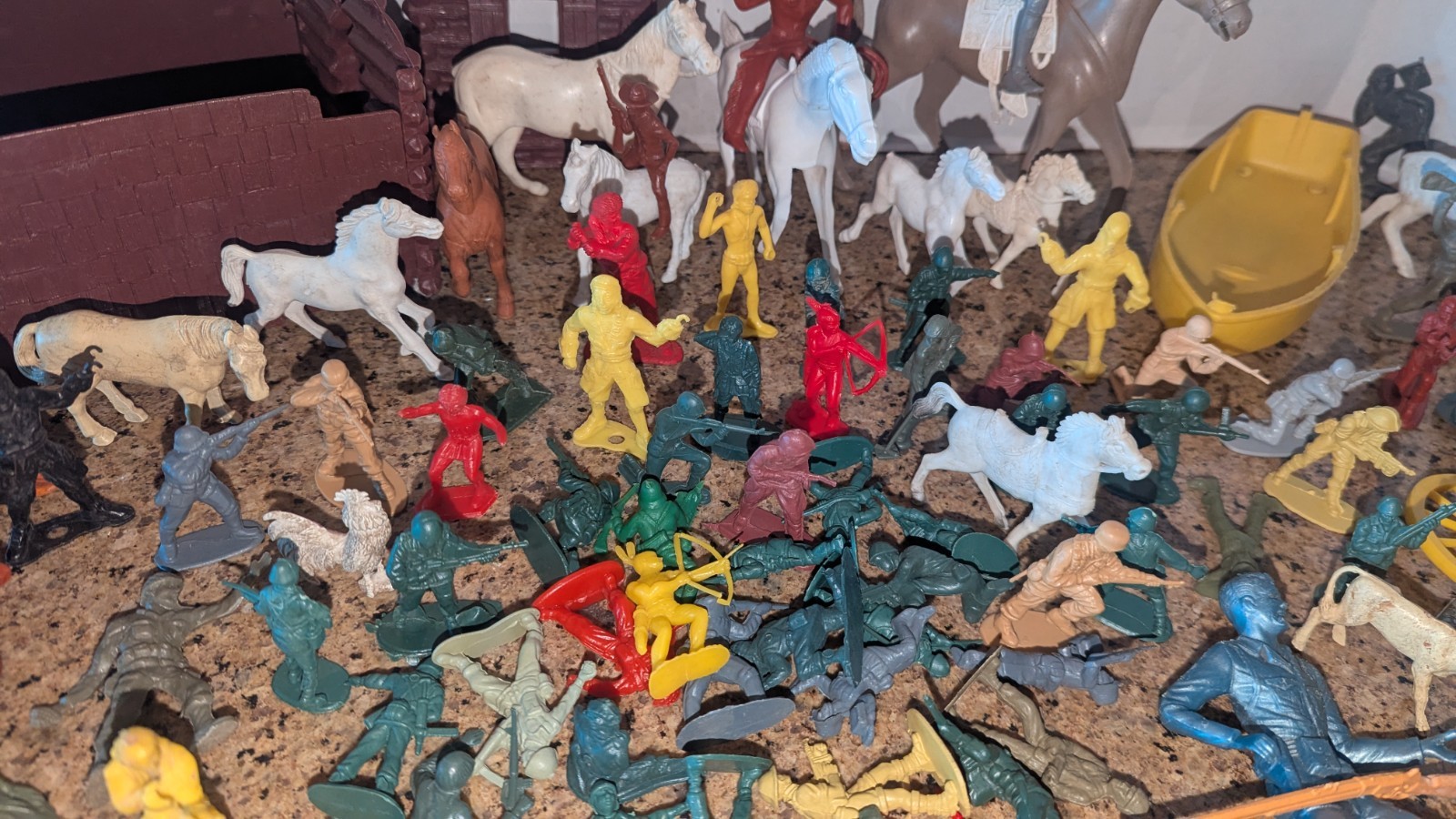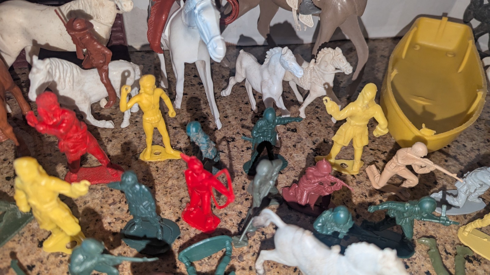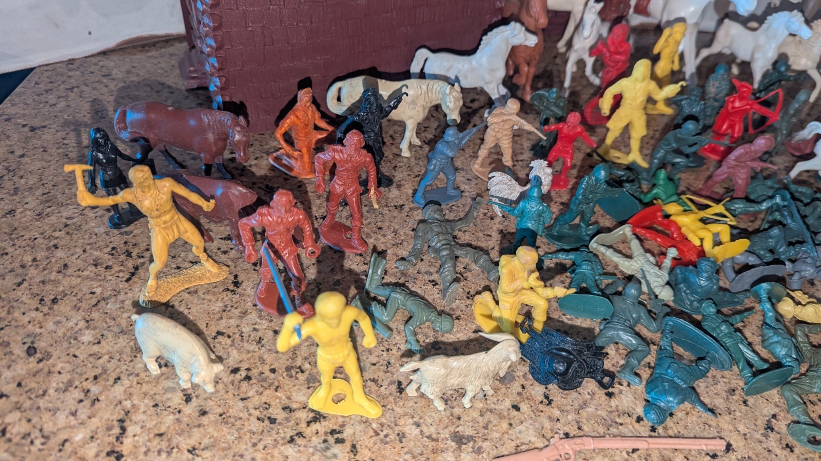 Lot Of Vintage Plastic Soldiers, Cowboys, Indians Horses parts pieces B3