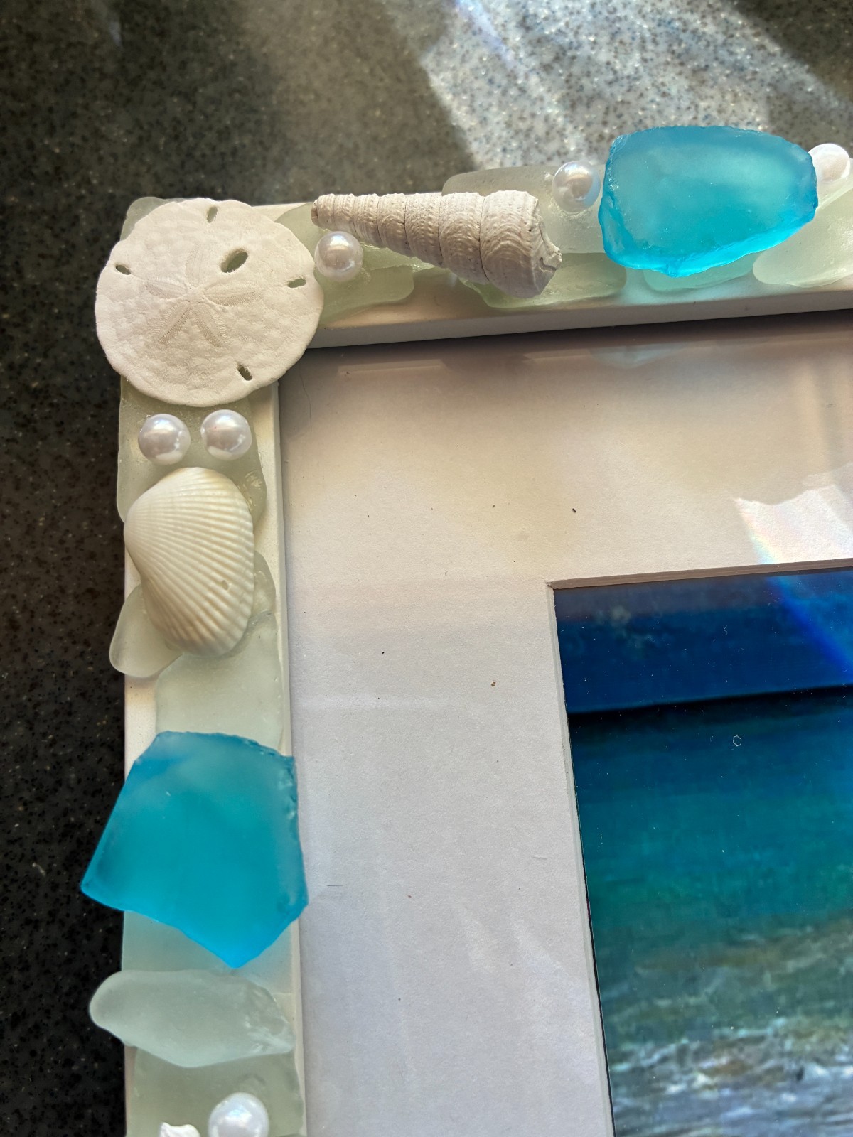 как выглядит Sea Beach Glass Seashells and Sea Glass Art Decor 9" x 11" Frame - Photo 5" x 7" фото