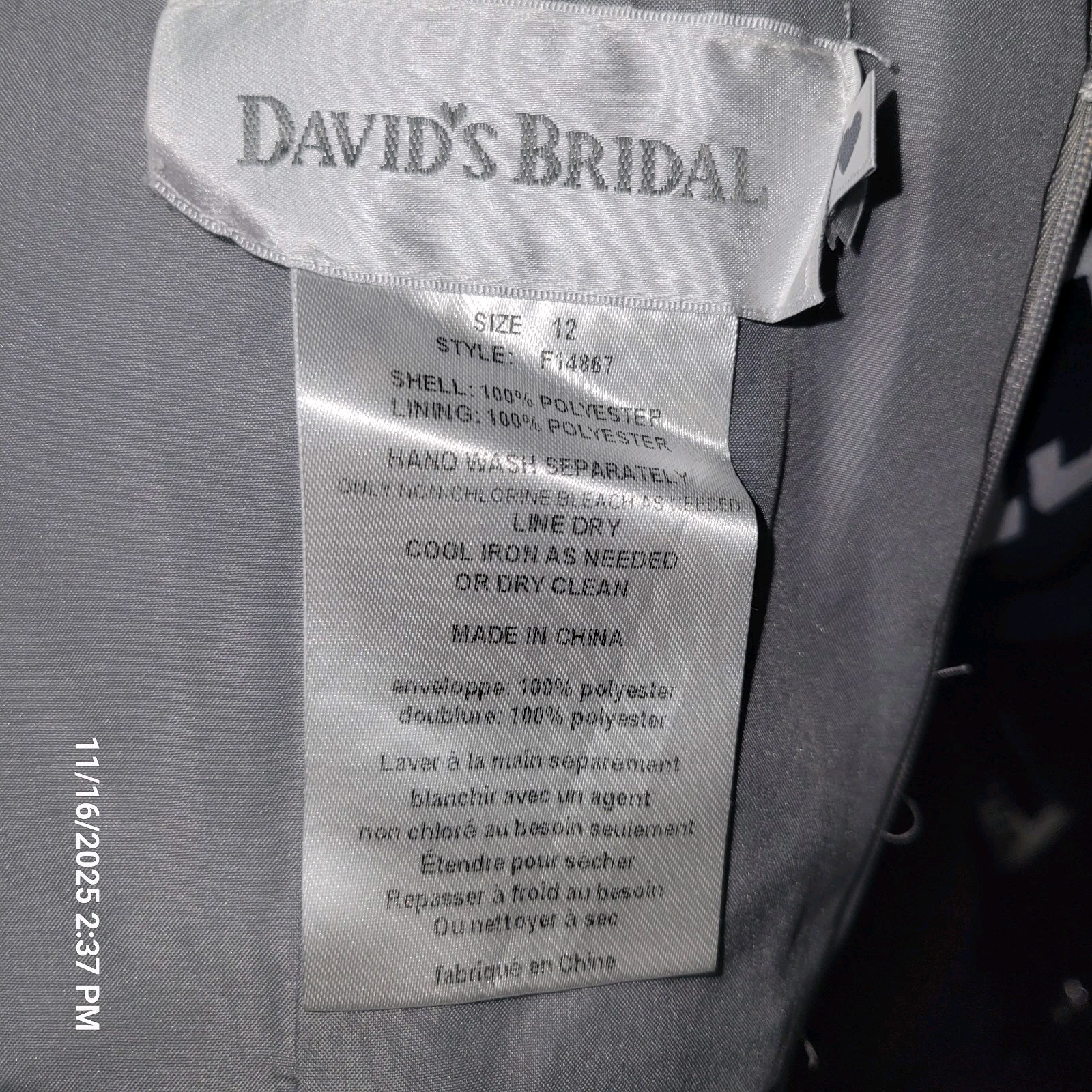 как выглядит David s Bridal Bridesmaid Prom Dress Gray Strapless Lined Size 12 фото