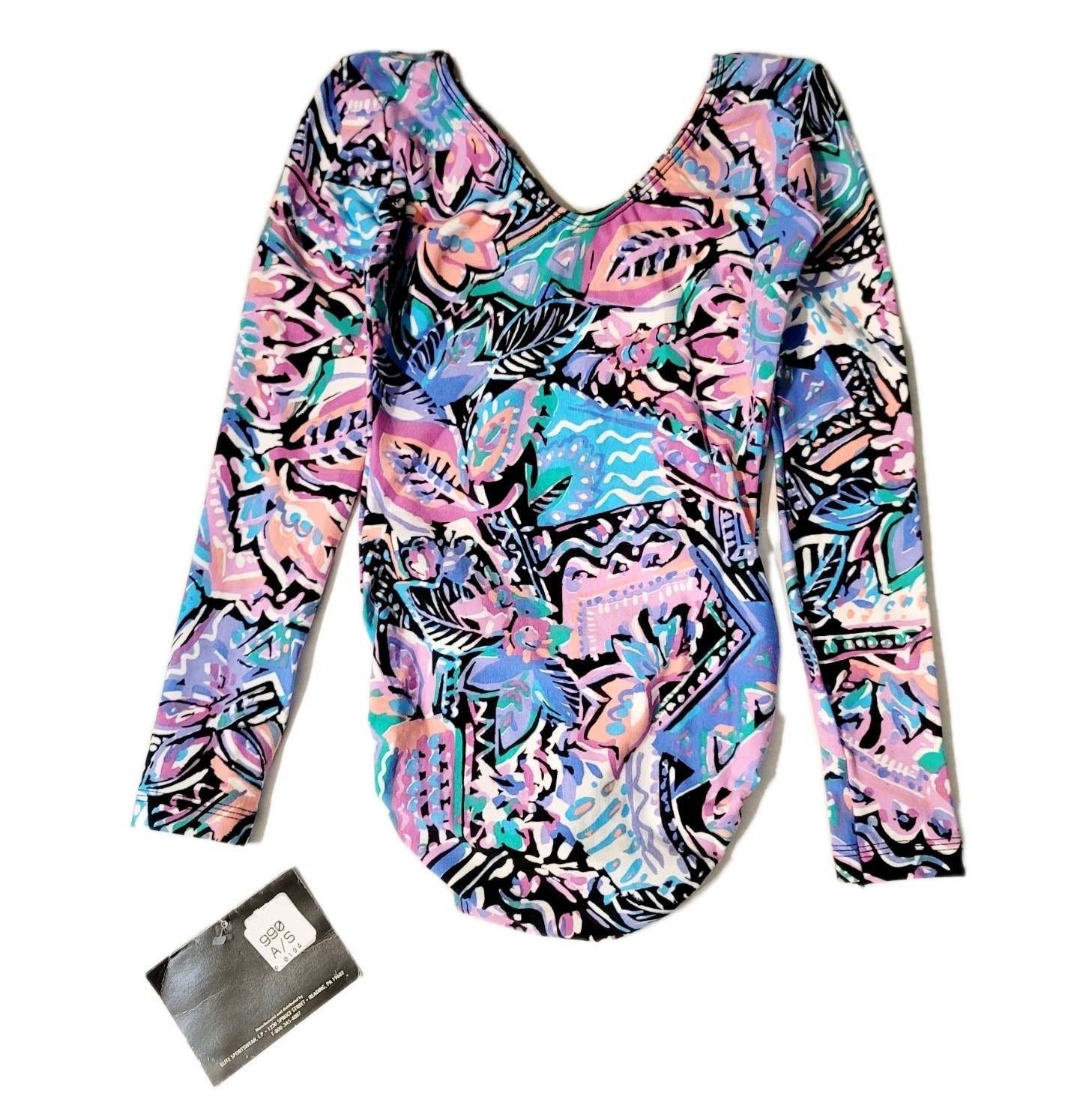 GK Elite VTG 90s Pastel Floral Leotard Bodysuit Cotton Rich Size AS Adult S NWT