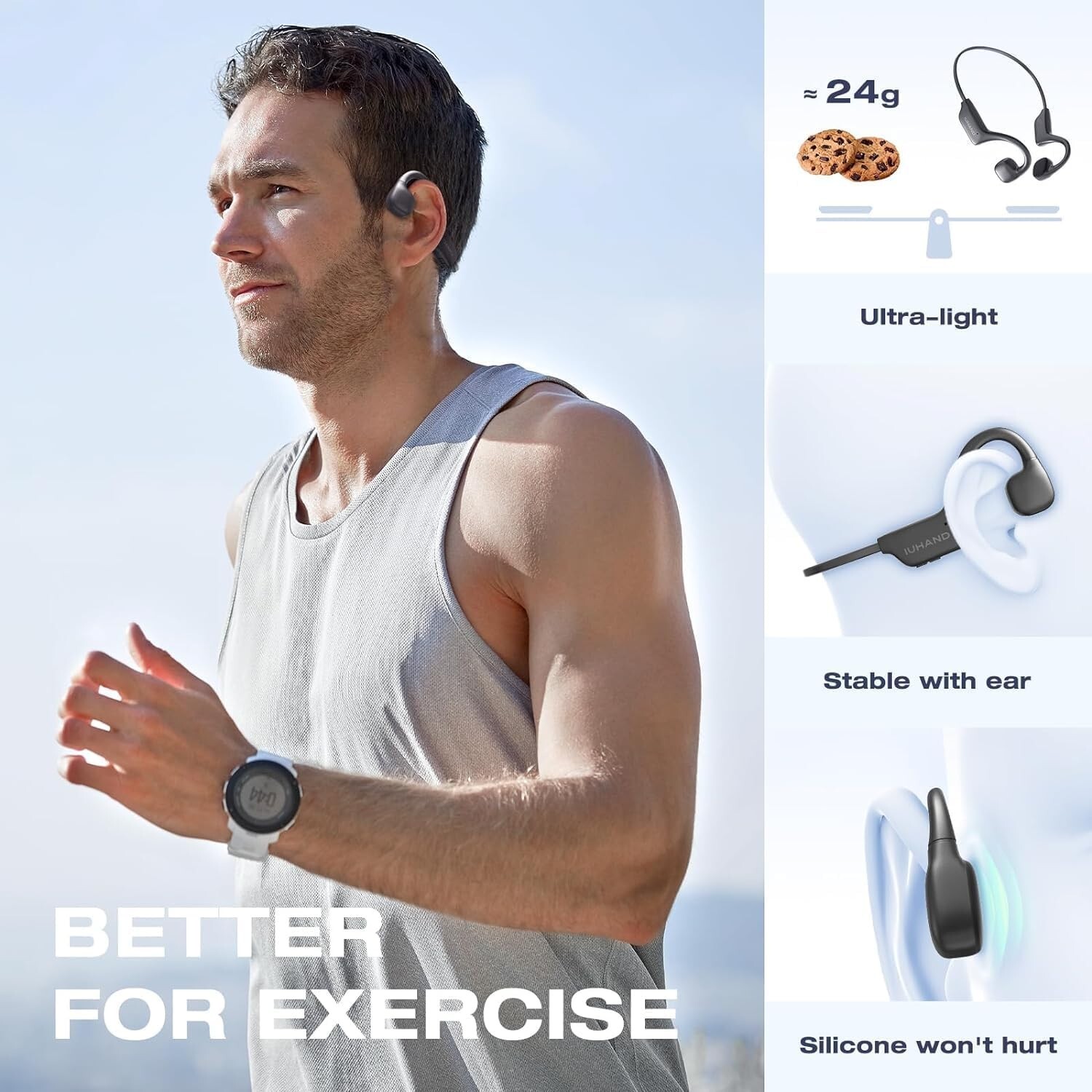 Bone Conduction Headphones, IPX6 Open-Ear Bluetooth Ultra-Light Headphones