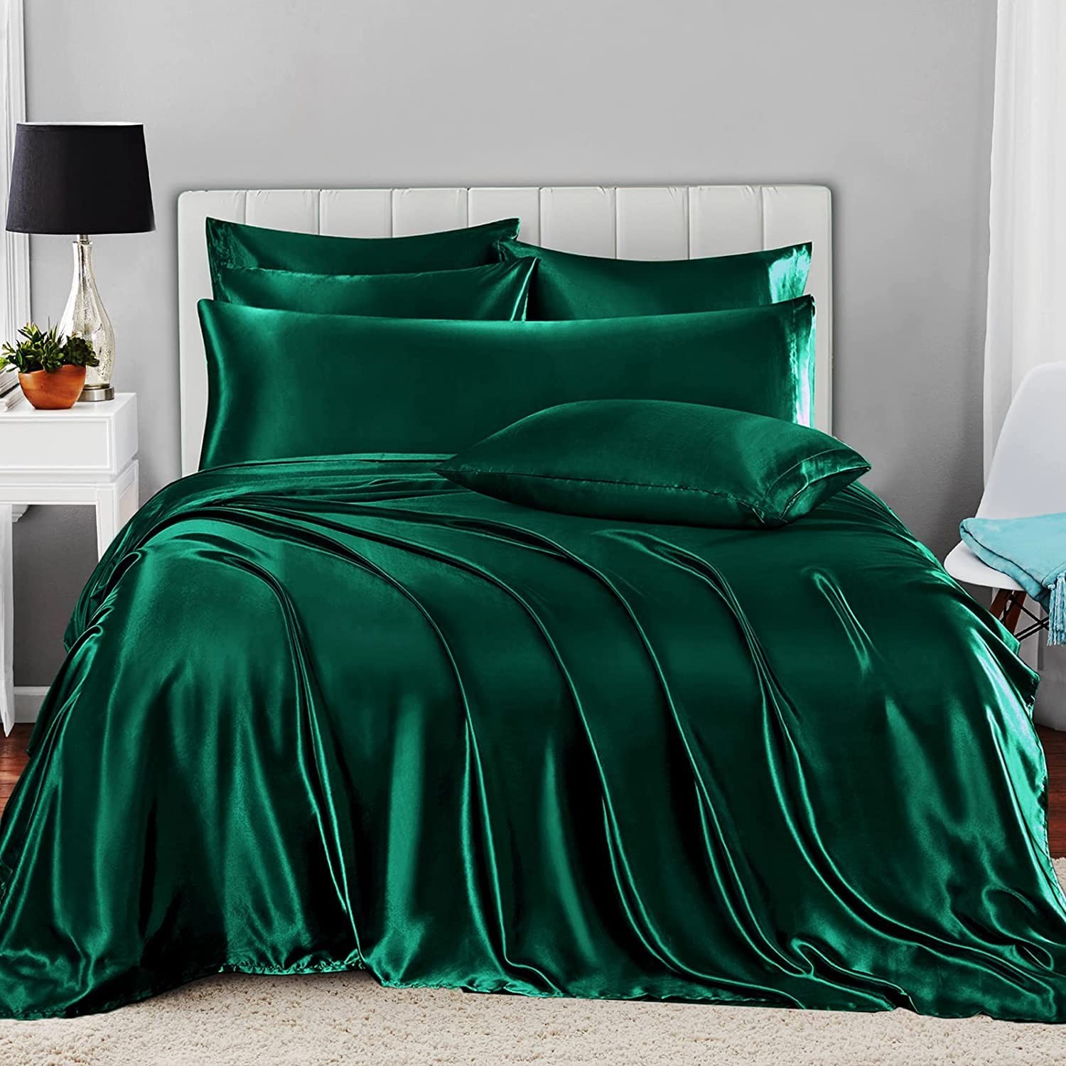 7pcs,Satin,California,King,Size,Bed,Set,Blackish,Green,Luxury, |