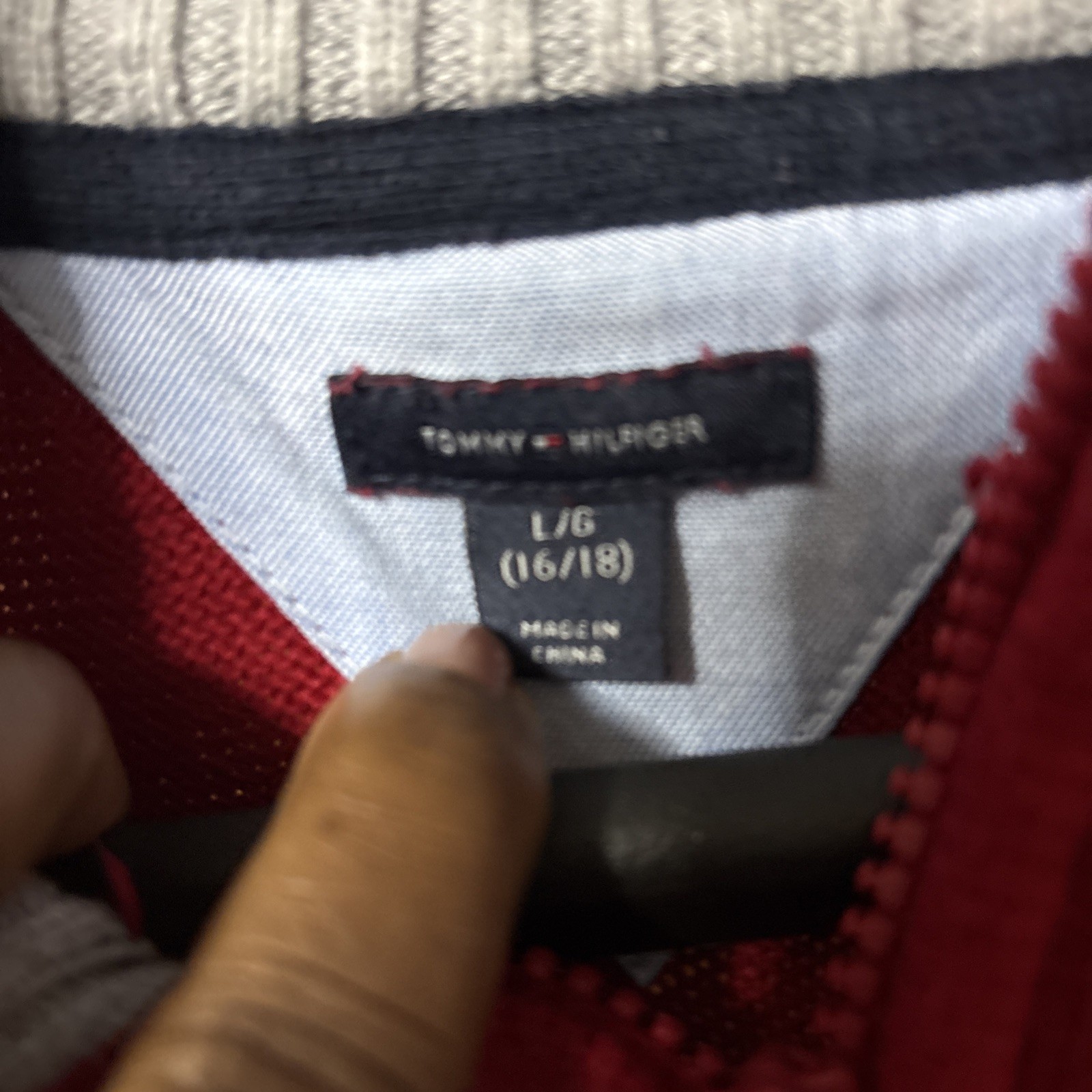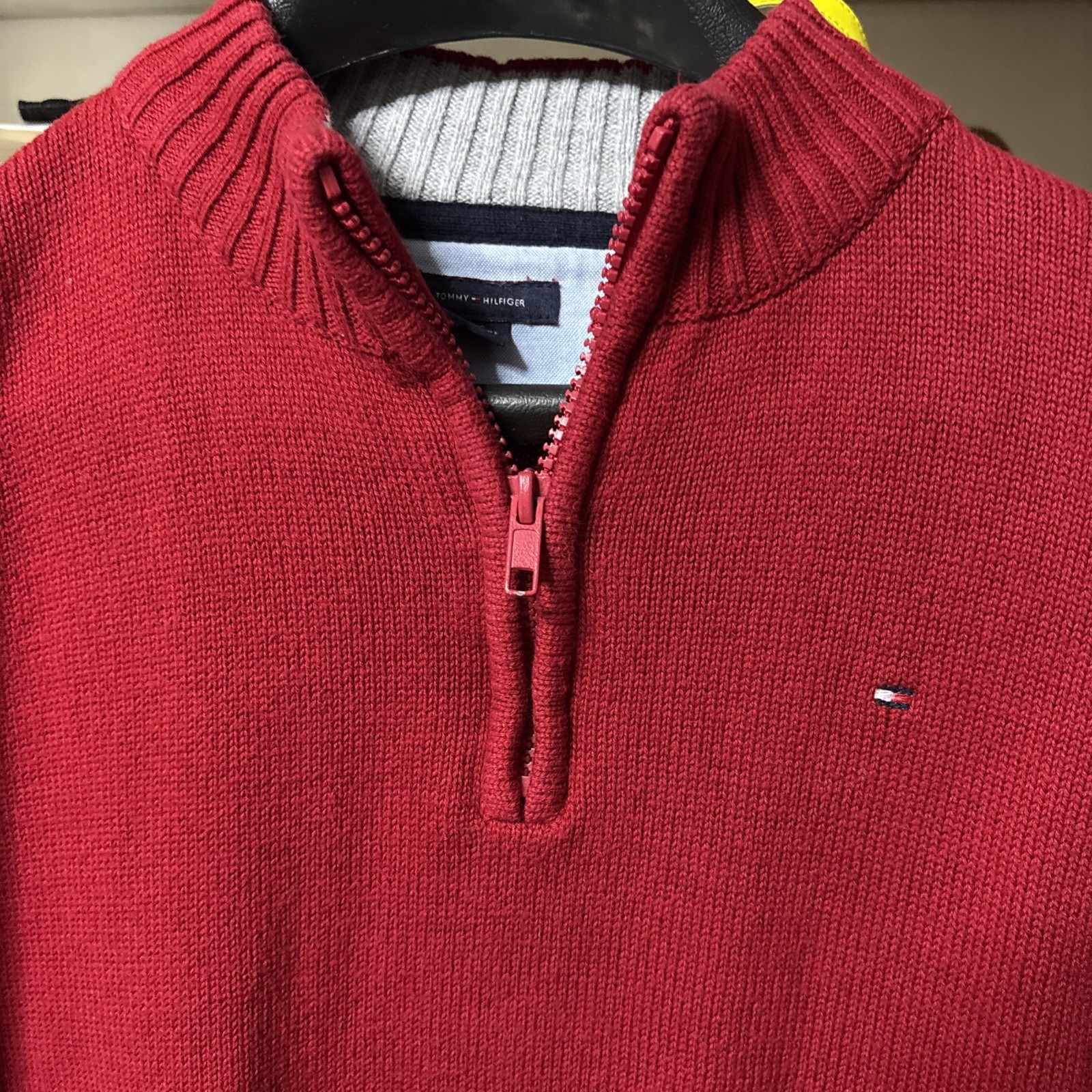 как выглядит Tommy Hilfiger Boys Half Zip Red Pullover Sweater Sz 16/18 фото